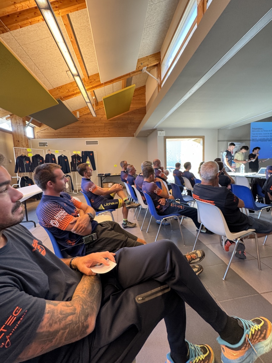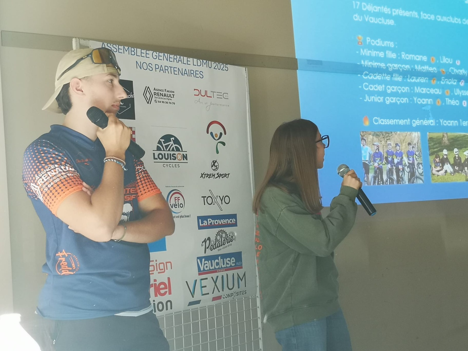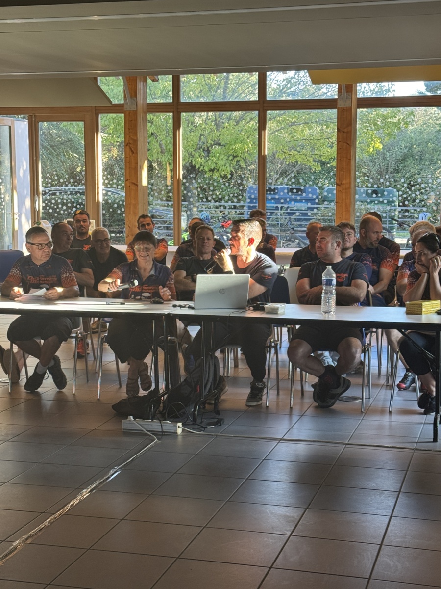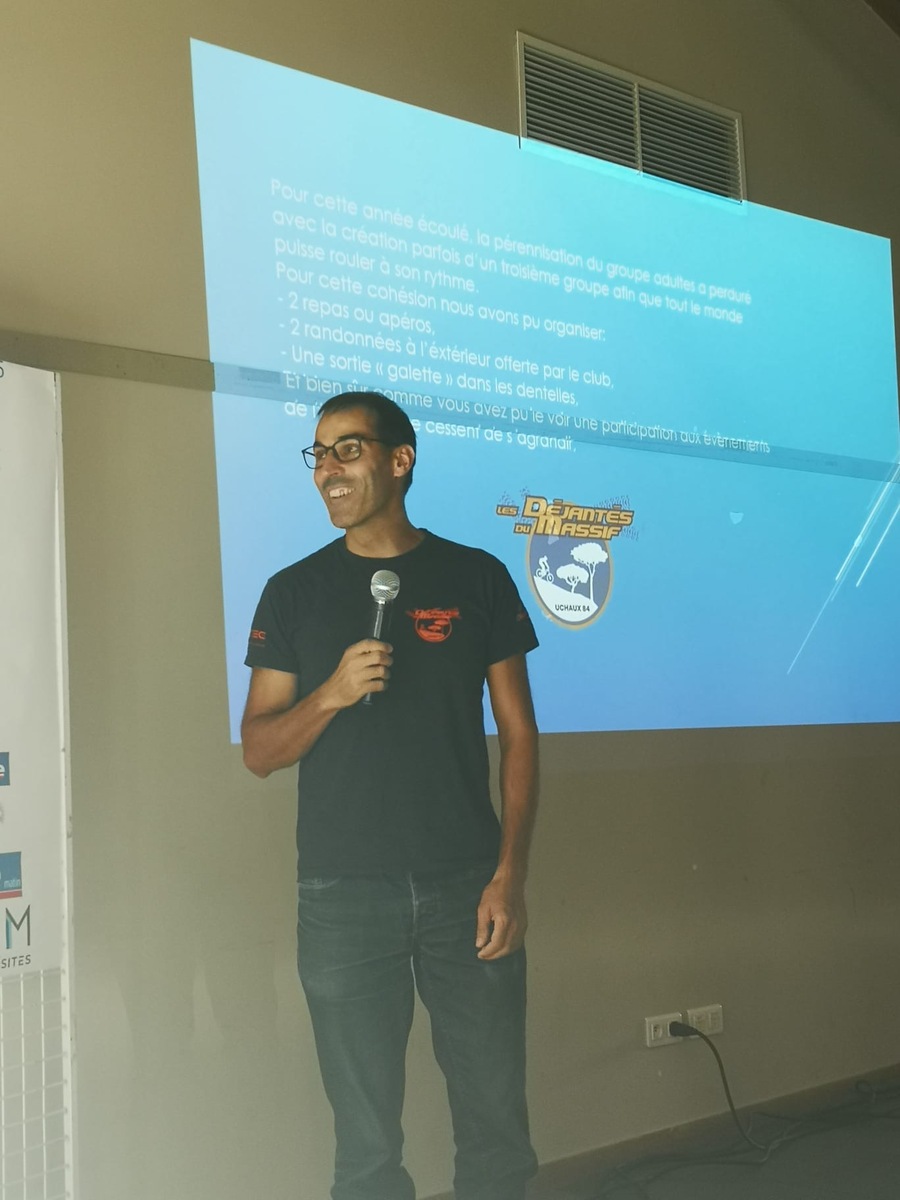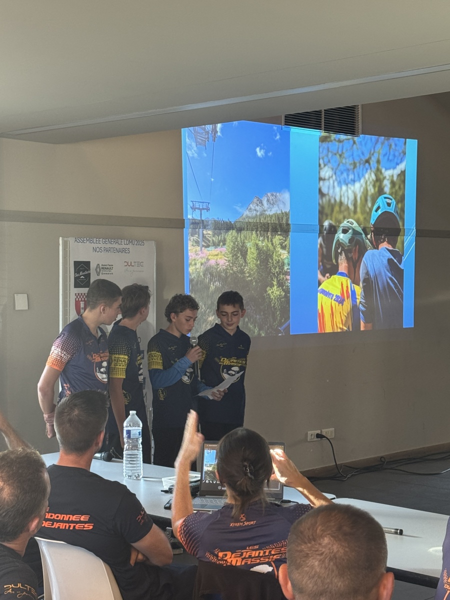 Samedi 27 septembre s’est tenue la traditionnelle Assemblée Générale des Déjantés du Massif du Chaud. Ce rendez-vous incontournable de la vie du club a été suivi de quelques informations sur l'école au cours desquelles l'ensemble de l'encadrement a présenté ses objectifs, d’un tirage de la tombola et d’un moment de convivialité. L’assemblée a permis de présenter un compte-rendu riche en activités, tant pour les adultes que pour les enfants, avec une année marquée par de nombreux événements. Les enfants ont d’ailleurs pris la parole avec beaucoup de bon sens et de créativité pour partager leur ressenti sur certaines animations : séjours, cyclo-découvertes, critériums… autant de projets qui témoignent de leur engagement et de leur enthousiasme. Même si nous aurions souhaité la présence d’un plus grand nombre de familles, les parents et enfants présents se sont dits très satisfaits de ces échanges et de la qualité des moments partagés. L’un des faits marquants de cette assemblée fut le témoignage d’une maman qui a tenu à remercier publiquement l’équipe pour son investissement et son encadrement tout au long de l’année : une reconnaissance précieuse et motivante. Et après ? Les prochaines activités s’annoncent tout aussi fédératrices : la participation des Déjantés au traçage des circuits dans le cadre d’Octobre Rose, On vous attend nombreux et nombreuses pour soutenir une cause importante (4 octobre) et la traditionnelle vente de pommes qui aura lieu le 11 octobre.