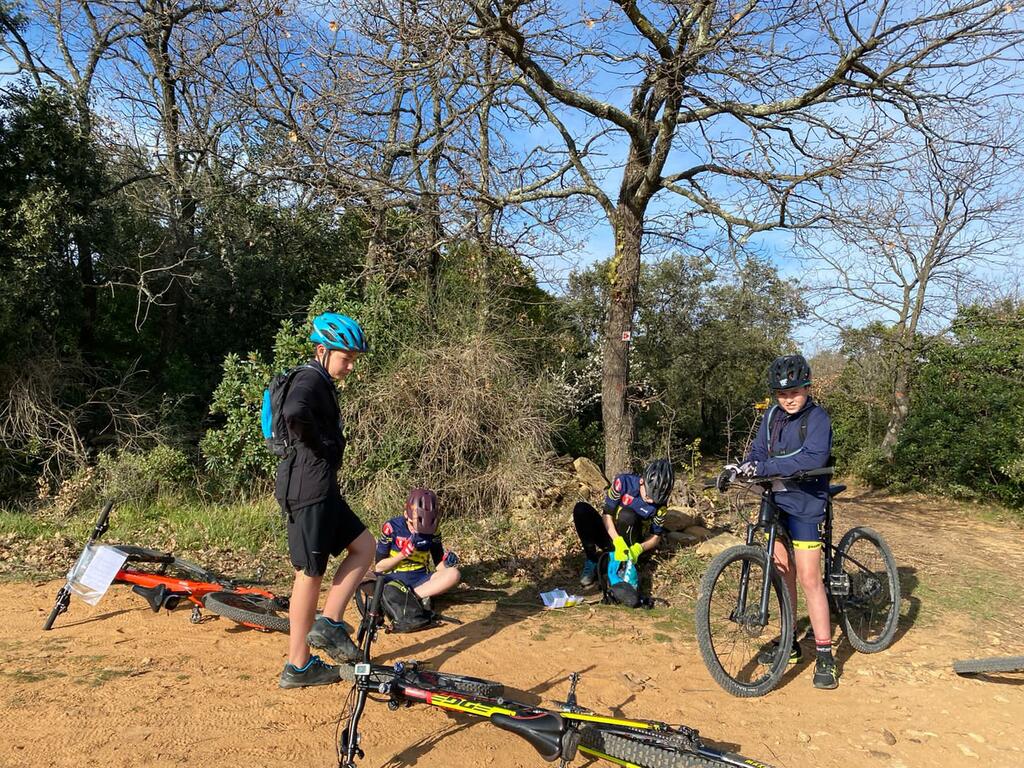 Groupe 1: tous les enfants étaient présents (12/12). Au menu : Endurance, botanique, anatomie d'un VTT et revue des sacs.