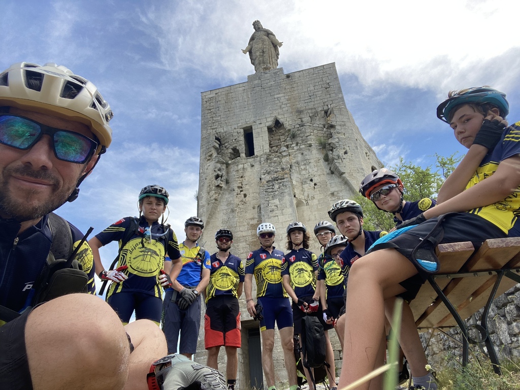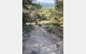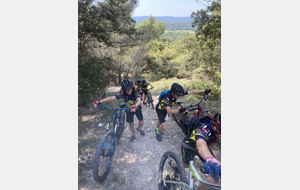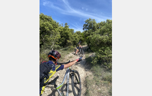 Direction Saint Paul : une belle partie bien roulante  et nous rattaquons les choses sérieuses, il faut remonter à  Saint Restitut , passage dans le village où nous rafraichissons nos têtes  à la fontaine du village, puis  direction Bollène et le Barry…. Ca monte encore… mais on finit par un chouette single, puis les fameuses descentes du Barry, bien rocheuses,  en passant par le village troglodyte.