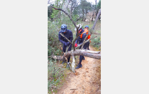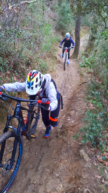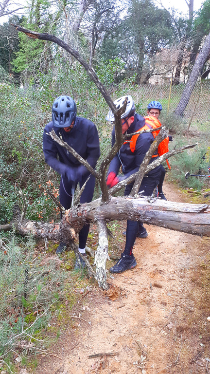 Et après un arrêt gouter "express" à l'abri du vent, nous sommes rentrés par le Rieu (heureusement presque à sec !), un single un peu "gras" qui a fini de remplir les crampons et les semelles, le Moulinas (petite intervention sur un tronc en travers du chemin), Hauteville et les Farjons !