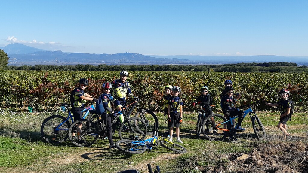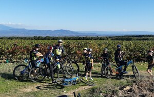 Nous poursuivons ensuite notre parcours autour des vignes du plateau entre Lagarde Paréol et Uchaux. Nous profitons du paysage, les couleurs de l'automne avec la vue sur le Ventoux, impossible de ne pas prendre une photo !