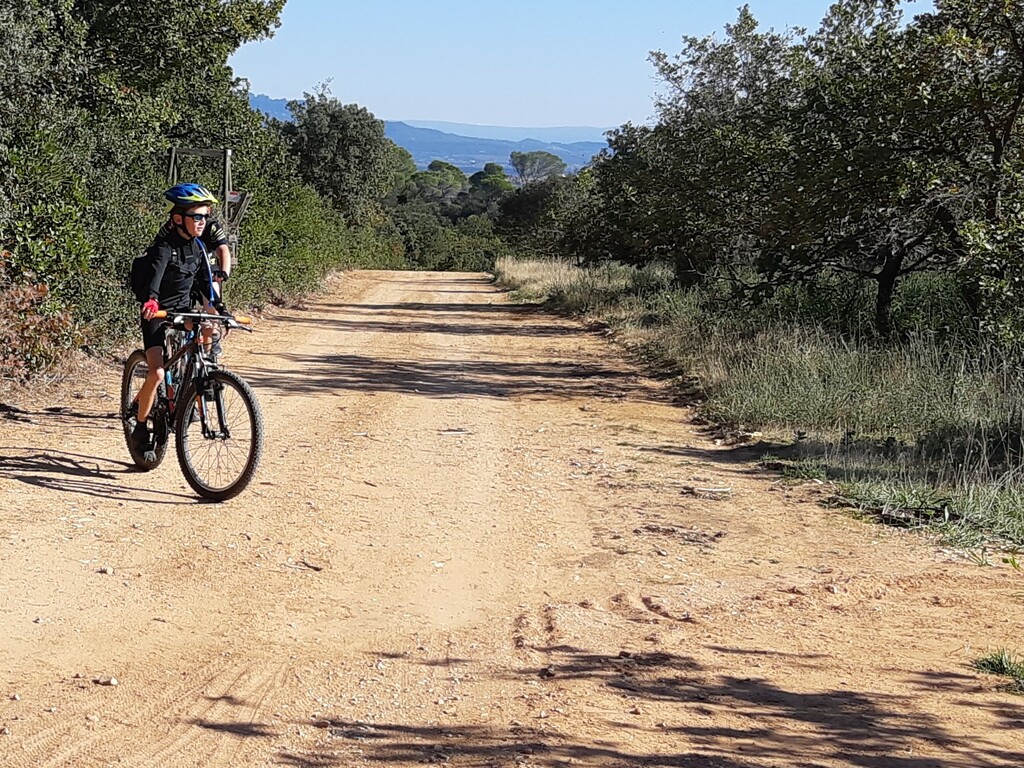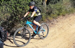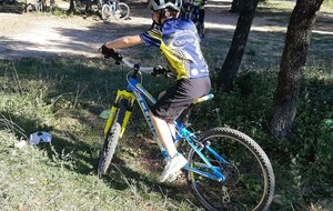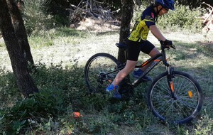 A l'arrivée à la cabanne des chasseurs nous improvisons un exercices de mania entre les arbres ! Pas facile d'appliquer le pédalé freiné mais le groupe s'applique et à force de persévérance, finit par réussir !