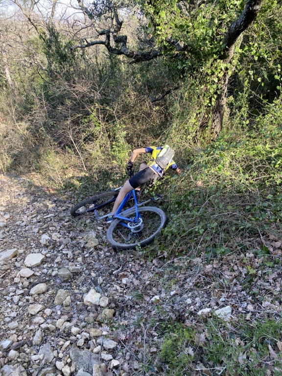 Puis direction le bas de Mornas par une descente bien bien technique… pour aller sur le derrière du Montmou… une découverte pour la plupart d'entre nous.