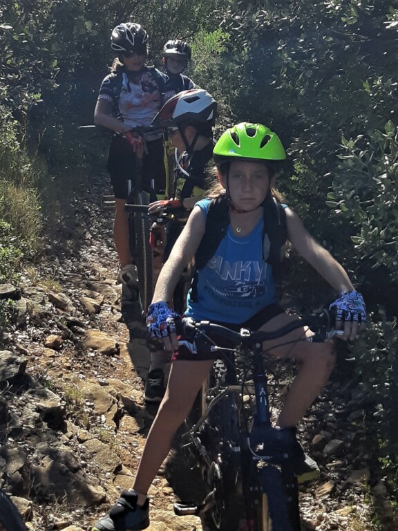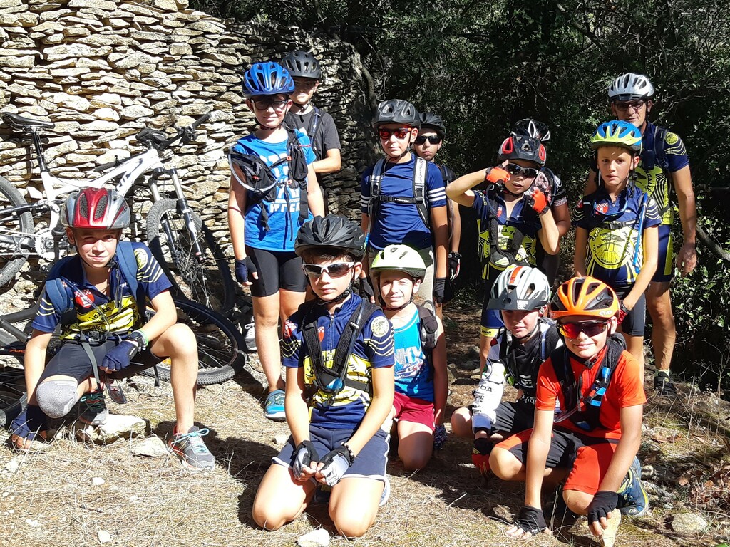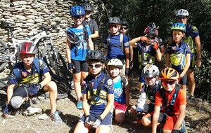 La montée continue jusqu'au single des Bories. Là, impossible de résister, c'est décidé nous prenons la descente. La descente est interminable et les bras en tremblent encore ! mais quel plaisir ! Un petite visite de la Borie, une photo de groupe et ça repart !