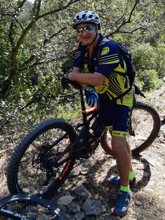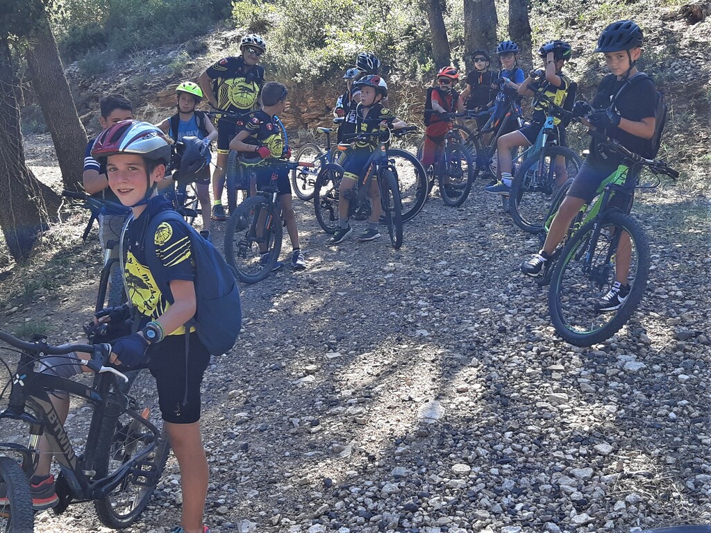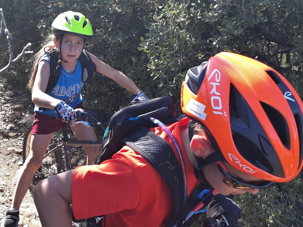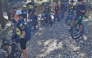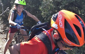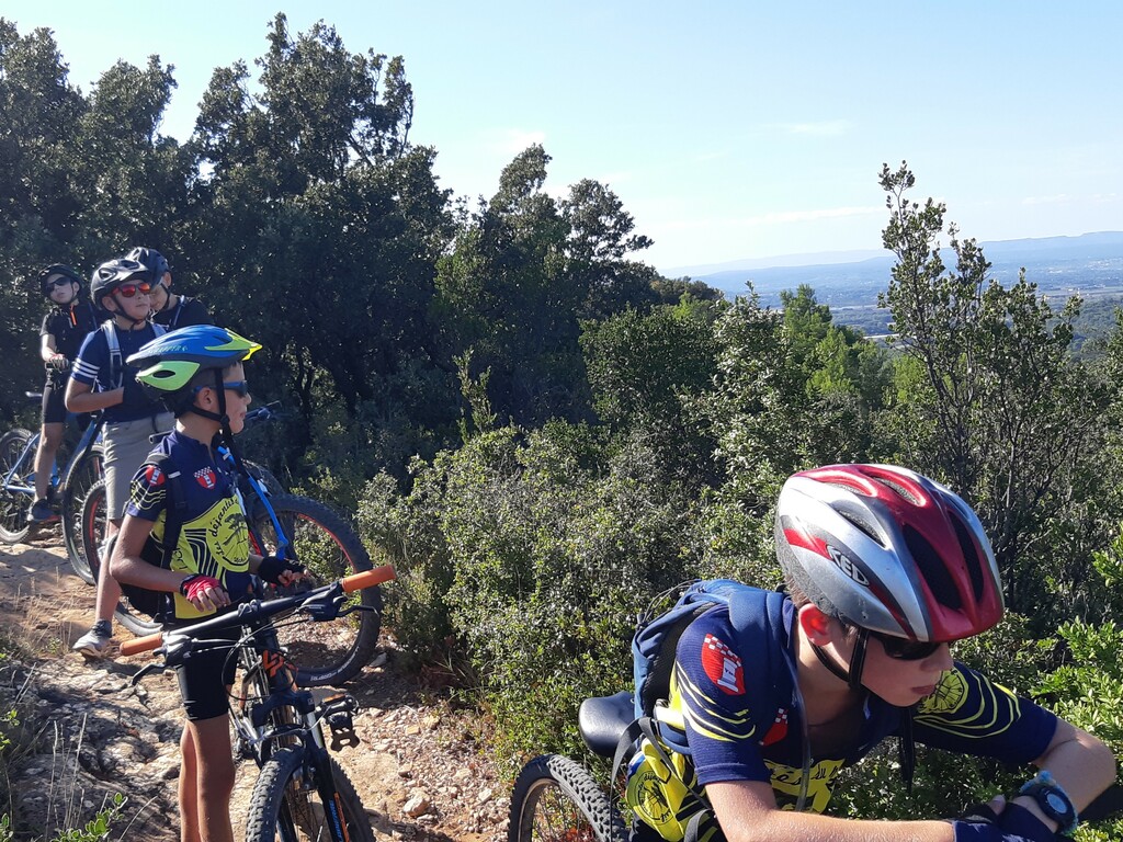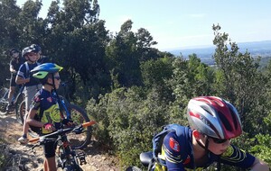 Ensuite, nous reprenons le DFCI, direction les escaliers du ball-trap. En route, Fred profite d'un single sur le côté pour reprendre un exercice de descente debout sur le vélo. A l'arrivée proche des escaliers, nous profitons que le groupe 2 finisse les exercices pour faire une petite pause.