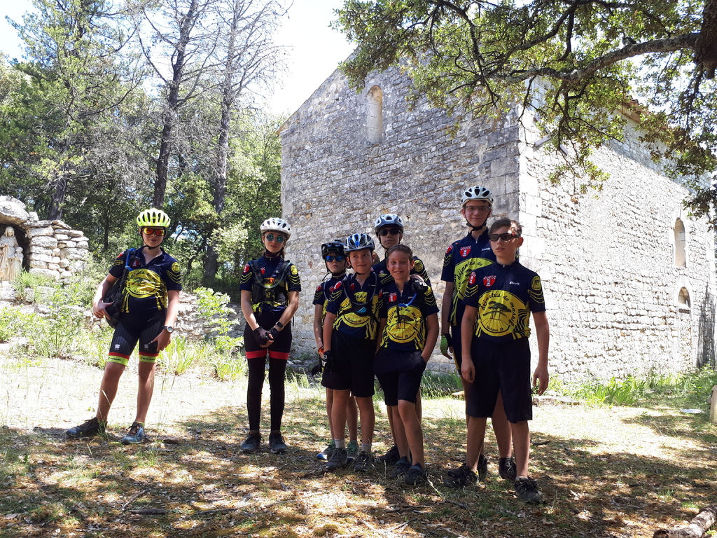 Puis, de nouveau un peu de route et de beaux singles pour arriver aux abords de Clansayes, avec un petit crochet (option grimpette) pour découvrir une ancienne chapelle du XIIème siècle et son cloitre.