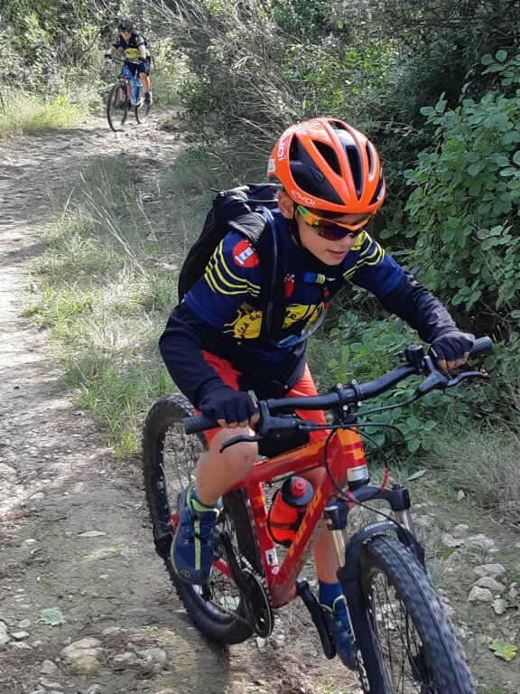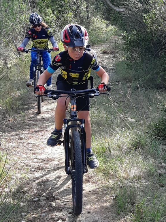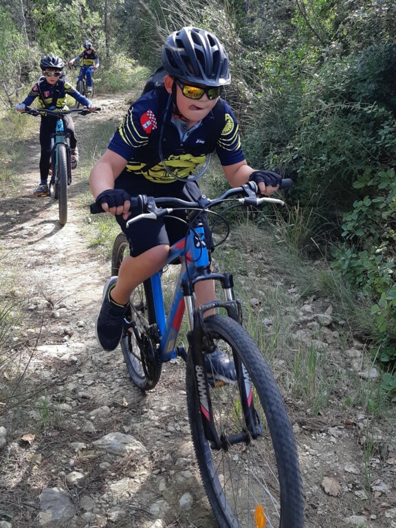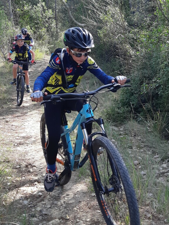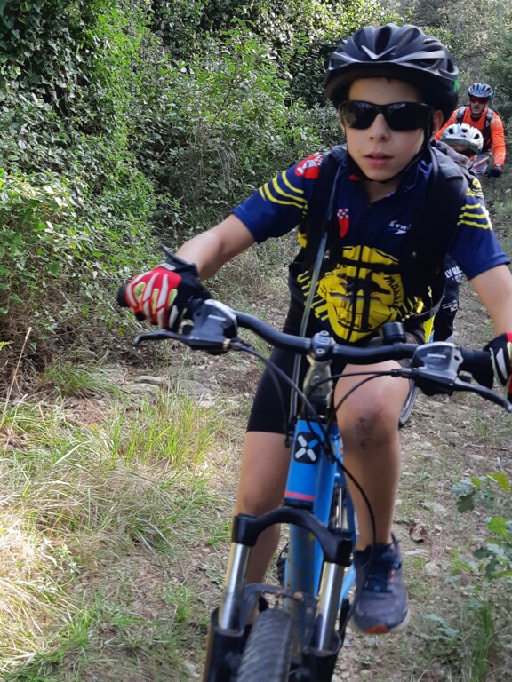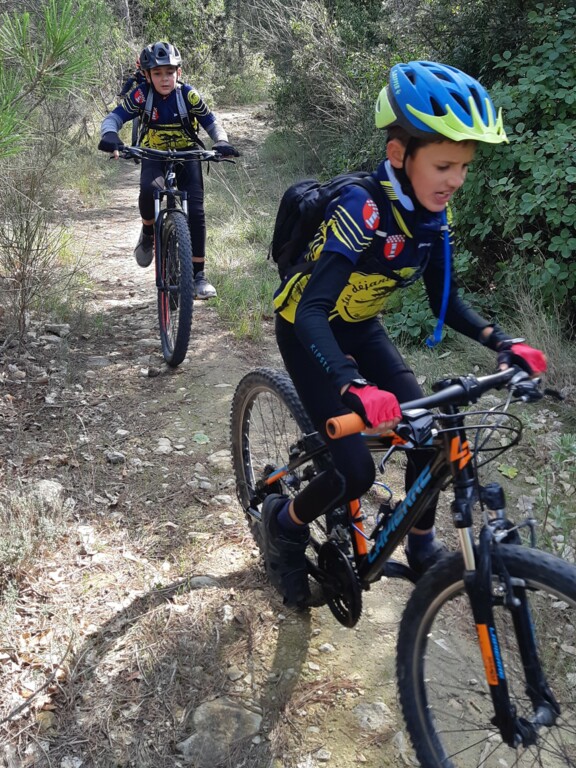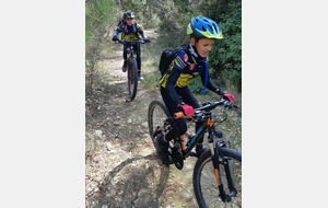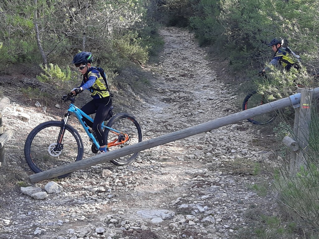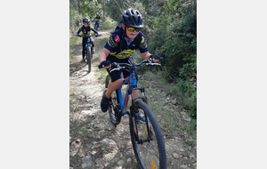 A l'arrivée au bike park, le groupe était très impatient d'attaquer les circuits, mais sécurité oblige, nous avons commencé par un repérage à pied de la piste verte et bleu histoire de canaliser un peu tout le monde. Ensuite, le groupe a enchaîné une piste verte puis une piste bleu à tour de rôle jusqu'à épuisement ! En fait, il a fallu stopper le groupe qui aurait bien tourné des heures ! Mais bon, il faut aussi laisser la place. En plus Fred a prévu un super parcours ! Alors c'est parti pour une descente sous le Castellas ! Nous repartons dans les bois et reprenons le chemin en bas du Castelas, ensuite direction le puit vers St Estève. Nous empruntons pas mal de passages rocailleux et pouvons mettre en pratique les marches vues au bike park ! Mais voilà nous sommes bien descendus... et une belle montée nous attend. Le groupe est prévenu ! Objectif, aller le plus loin possible sans poser le pied à terre. le single en montée comporte des pierres et avec la fatigue, l'exercice n'est pas facile ! Enfin nous arrivons au DFCI et la pause goûter s'est présentée naturellement !