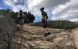 Au fil de nos enchaînements de montées/singles, nous avons rejoint la chapelle St Baudile, pour une pause goûter bien méritée.