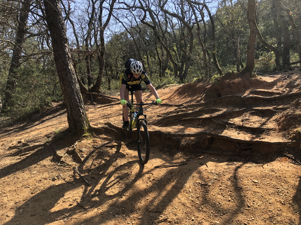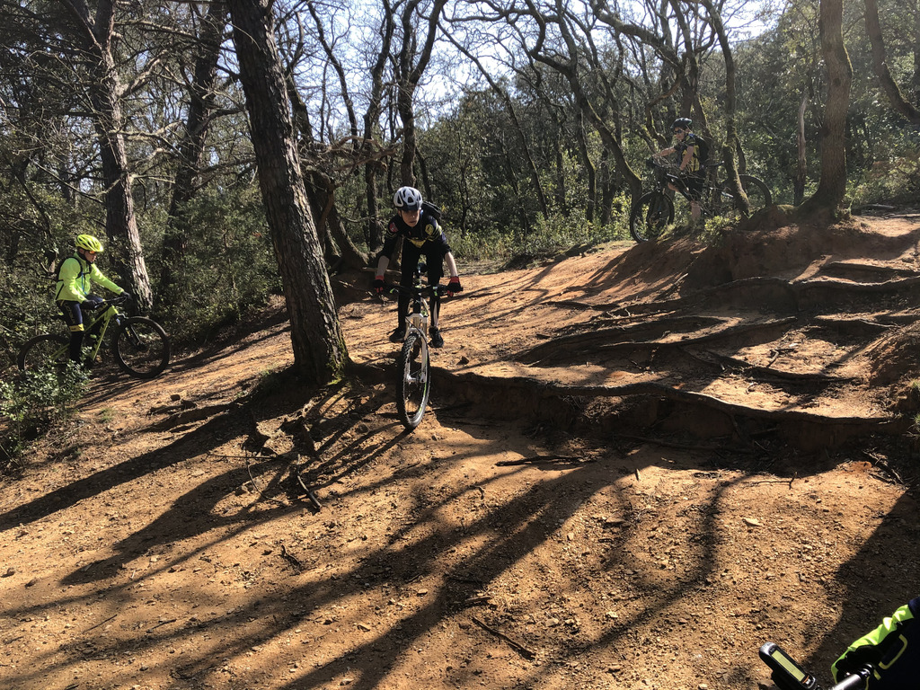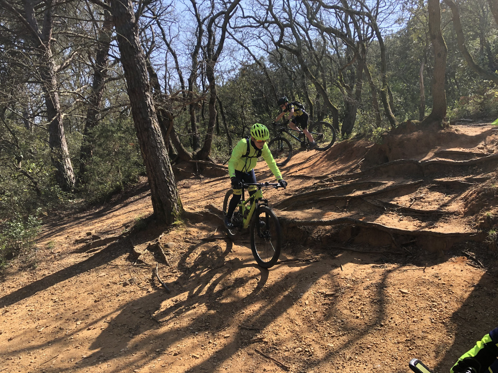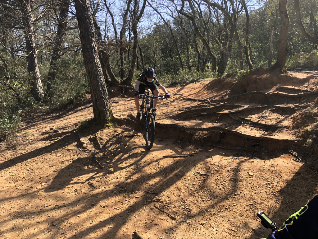 Nous avons profité notamment de l'abri des arbres pour pratiquer la maniabilité, notamment des descentes mélées de pierres et racines.