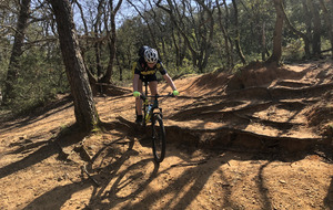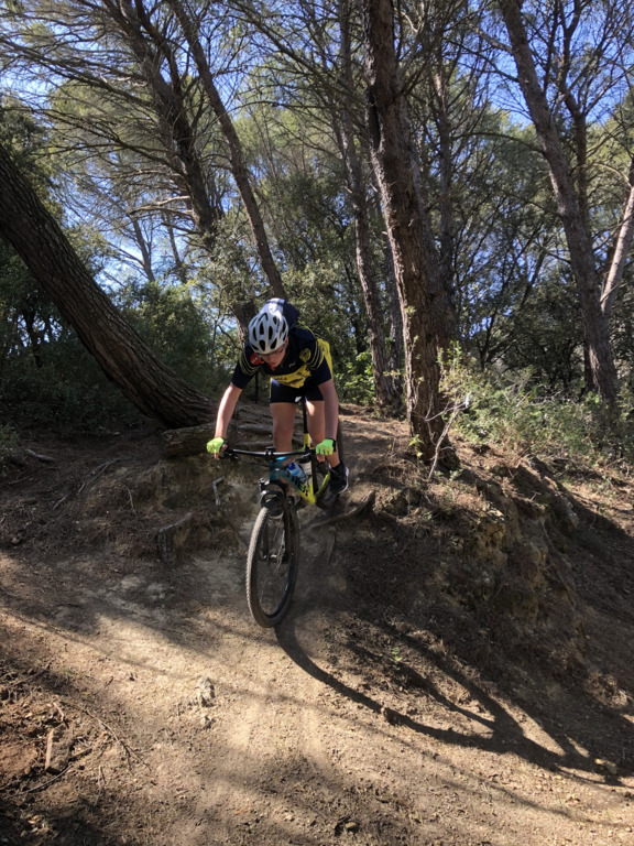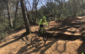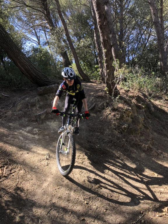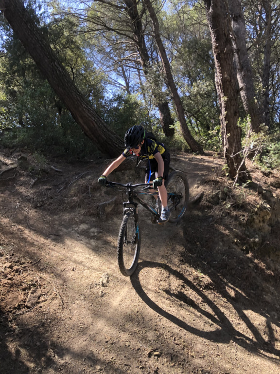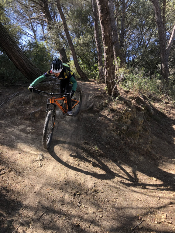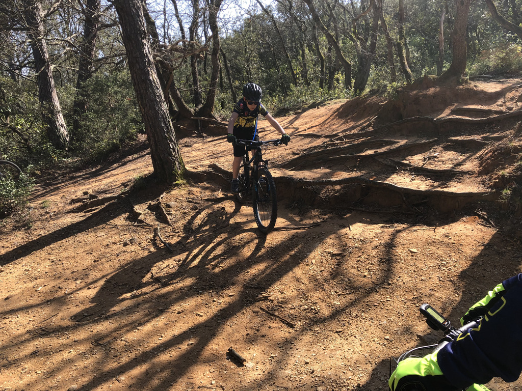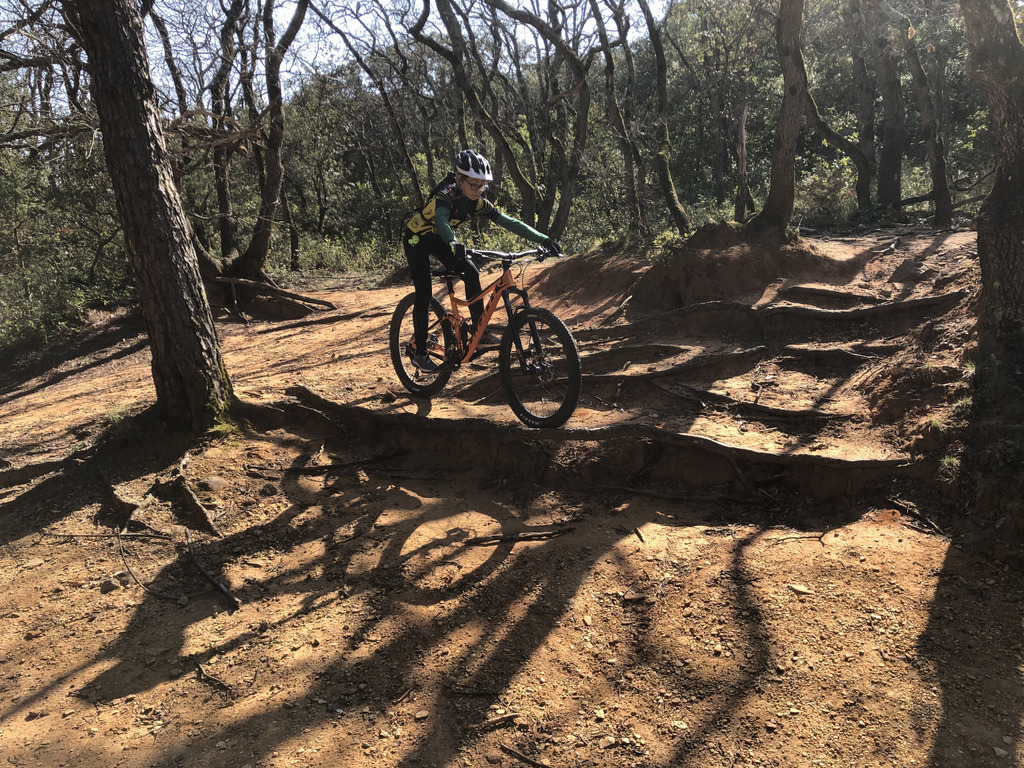 Nous avons profité notamment de l'abri des arbres pour pratiquer la maniabilité, notamment des descentes mélées de pierres et racines.