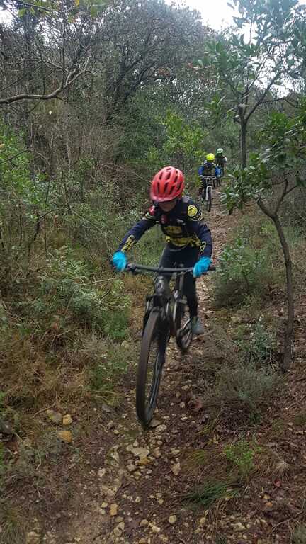 Un parcours avec de nombreux arrêts pour les passages techniques (franchissement de petits troncs d'arbres, passage en contournant un arbre en montée, descente accidentée), l'occasion de transformer tout cela en exercices qui nous force à constater que les progrès sont bien présents.