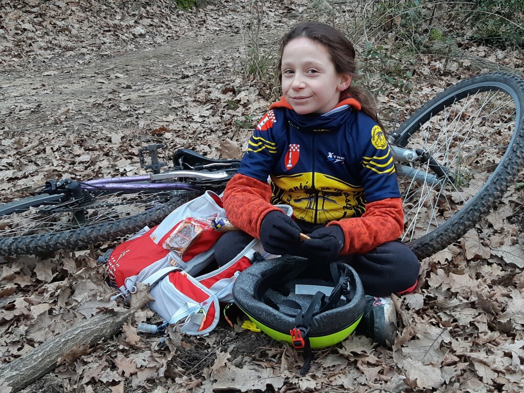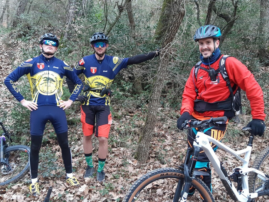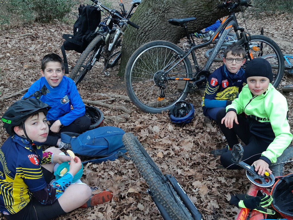 Nous prenons un moment pour goûter et repartons vers une dernière boucle. Une belle montée pour se réchauffer et enfin la dernière descente. Au passage Benjamin nous fait une belle démo de franchissement bien technique, d'abord en montée et surtout en descente ! Bravo !