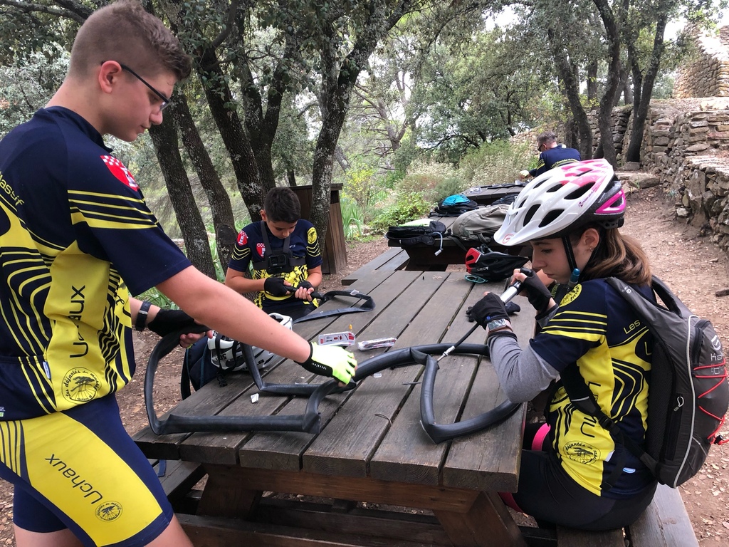 Durant l'entrainement à la réparation de chambre à air, nous leur avons également fait démonter leur roue avant.