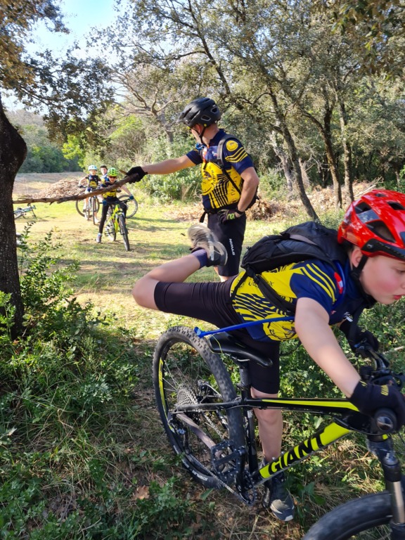 Passage sous les branches, exercice de lever de la roue avant et arrière, jeux d'équilibre, passage de marches, sauts...