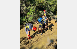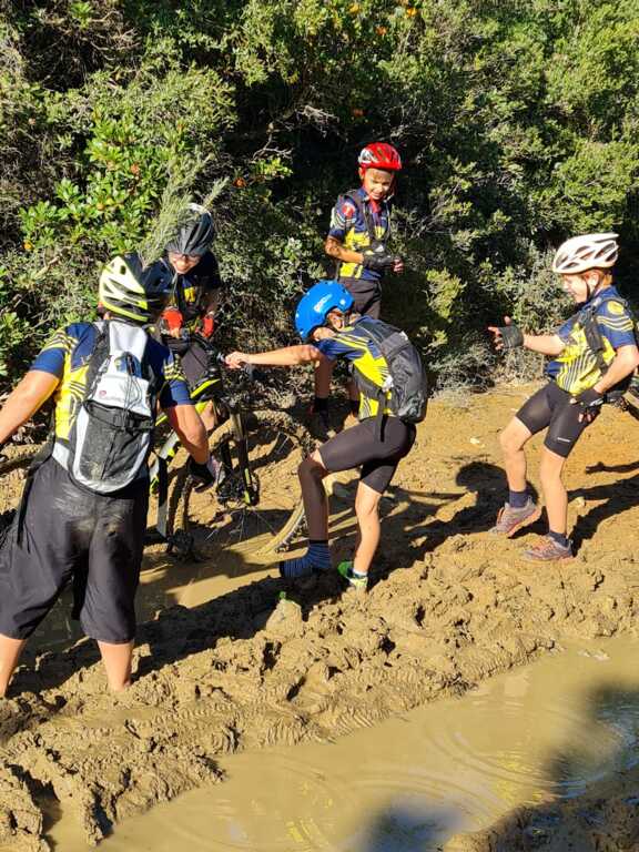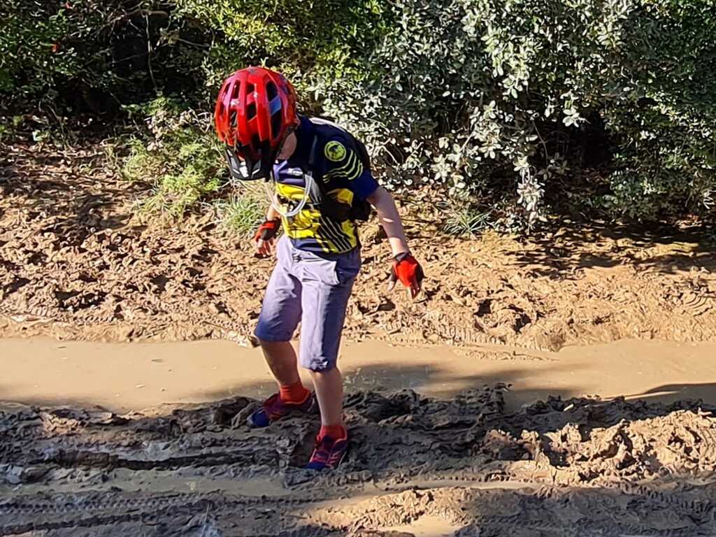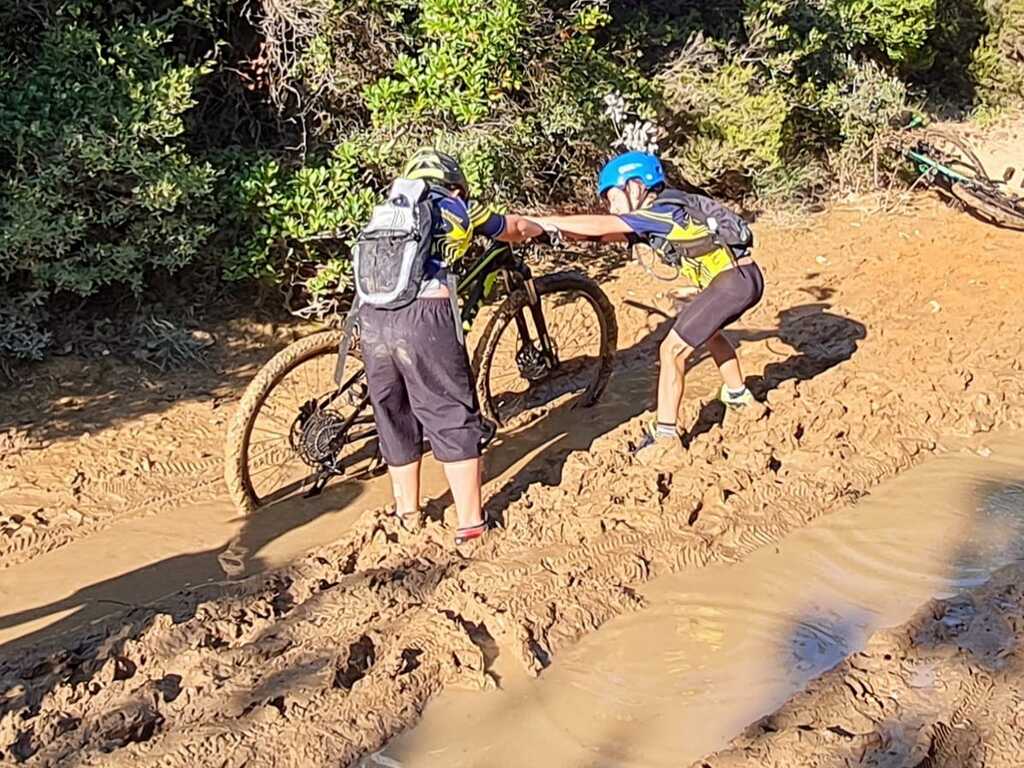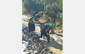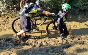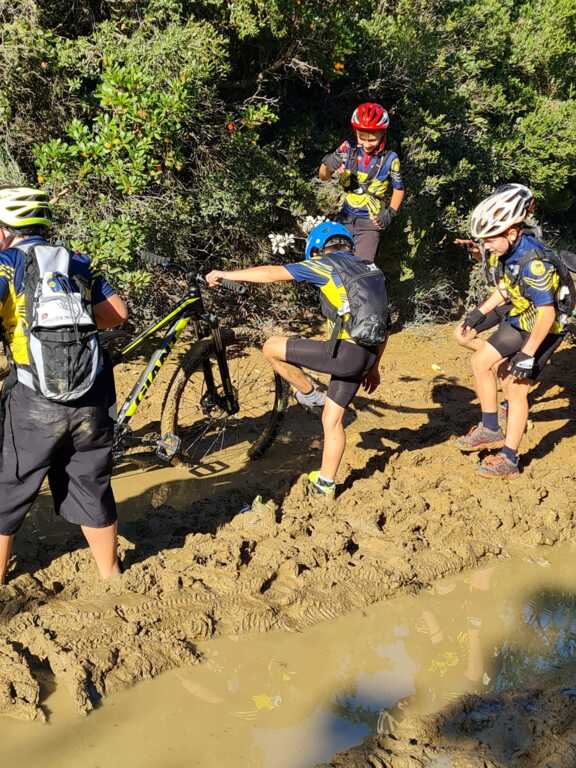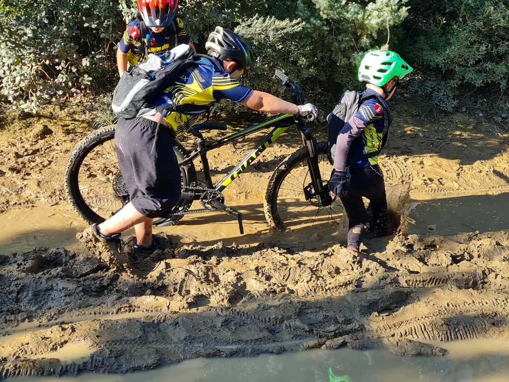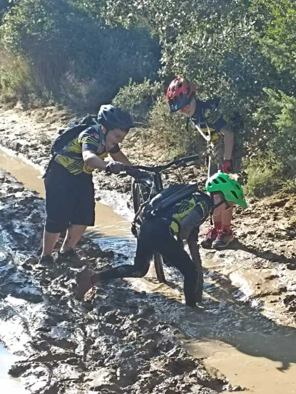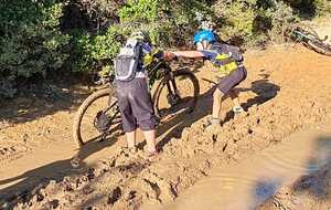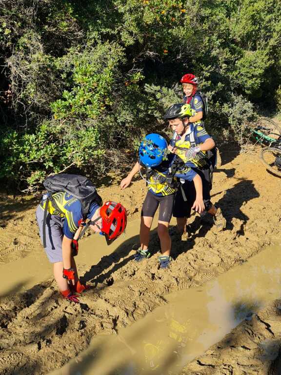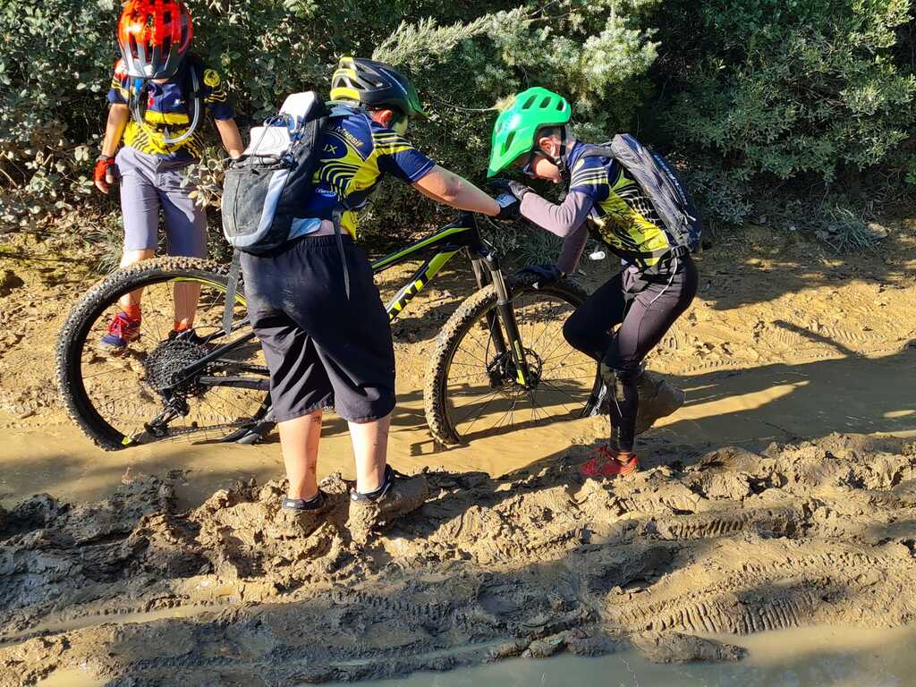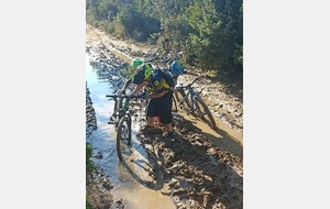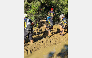 Nous sommes ensuite repartis par de nouveaux singles et là, photo à l'appui, Le groupe de jeunes s'est transformé en goupe de sangliers ! Impossible de les sortir de la boue ! Un régal pour eux ! Un désastre pour les parents !