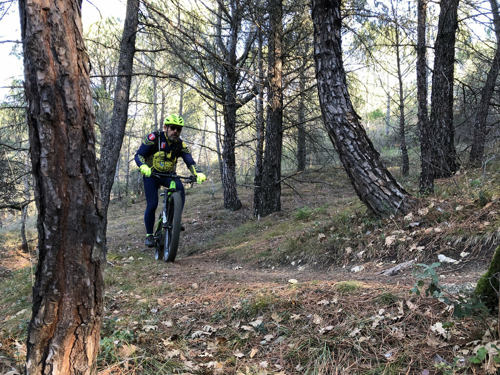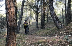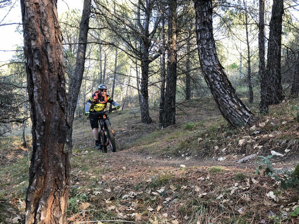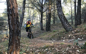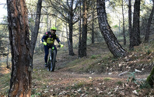 Au départ de la bibliothèque d'Uchaux, nous avons rapidement rejoint la "descente de la mort qui tue", très célèbre dans le club et bien appréciée du groupe.