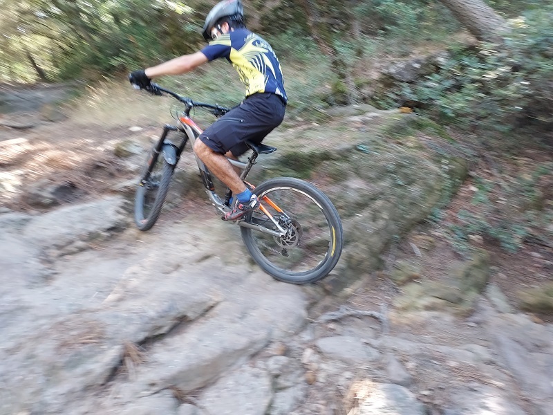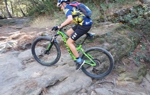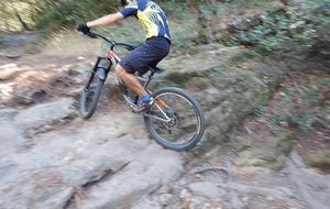 Un peu de technique VTT aujourd'hui en fin de séance au niveau des marches de Bouqueyran : franchissement des marches en montant et saut ou enroulement en descendant. Les gestes reviennent pour les anciens et se travaillent pour les nouveaux membres du groupe.
