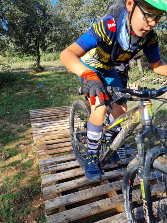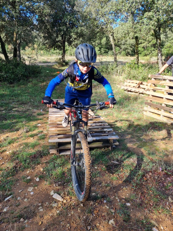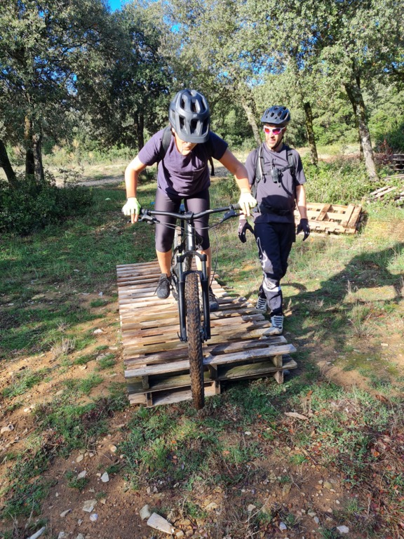 C'est l'occasion également de montrer le passage de marche et de travailler la position sur l'arrière du VTT.