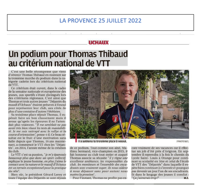 Notre jeune champion a eu les honneurs des colonnes de La Provence.
