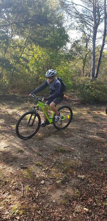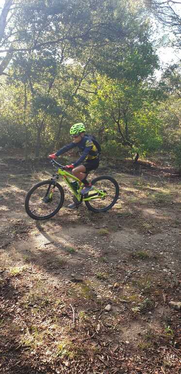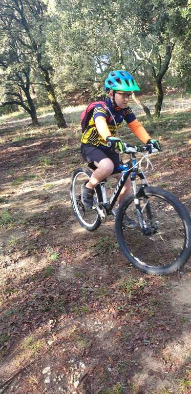 Ensuite nous sommes partis sur le DFCI, faire un exercice de montée (légère) en restant assis sur la selle et en changeant de braquet pour s'adapter aux changements de pente.