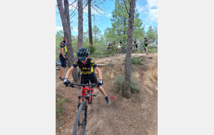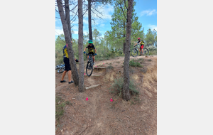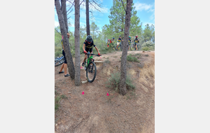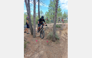 Ensuite, en évitant les chasseurs, nous nous sommes dirigés vers l'ancien centre aéré de Mornas pour un exercice de contrôle (descente, virage et freinage dans les graviers)... Pas loin de 80 % de réussite !