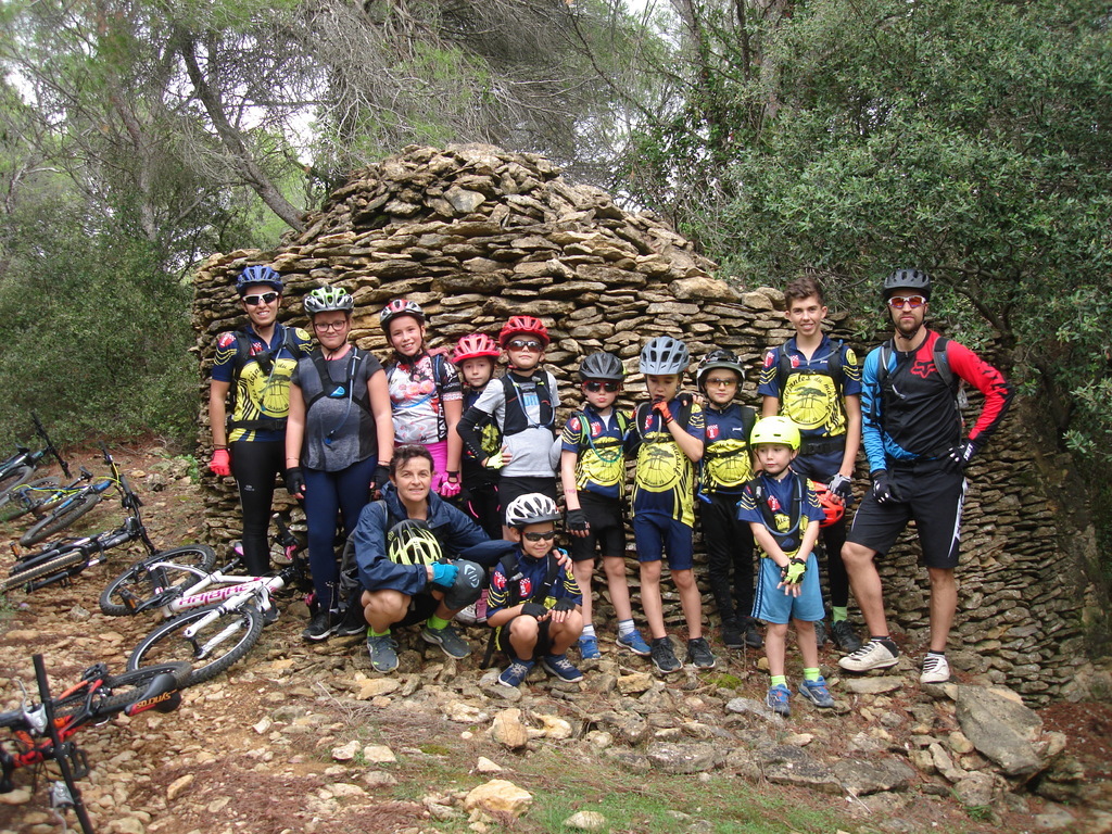 Le groupe a ensuite pris un single caillouteux en descente qui demandait de rester bien concentré ! Dans le chemin, nous nous sommes arrêtés pour admirer une Borie encore en très bonne état. La descente était pratiquement terminée et après la descente, il nous a fallu grimper histoire de bien apprécier le gouter ! c’est là que nous avons rencontré le groupe 6 ! Très appréciés des plus jeunes ! Au passage, merci pour le spectacle!