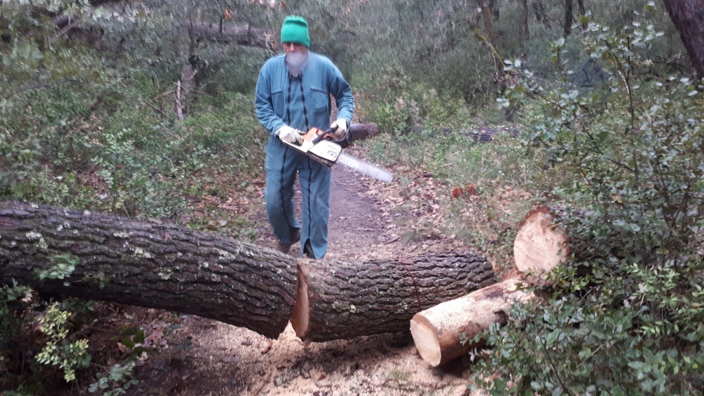 Ce matin l'équipe de bucherons du club était de sortie pour dégager les chemins bloqués par des chutes d'arbres...