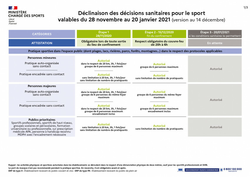Rappel des dernières décisions gouvernementales concernant notre pratique sportive