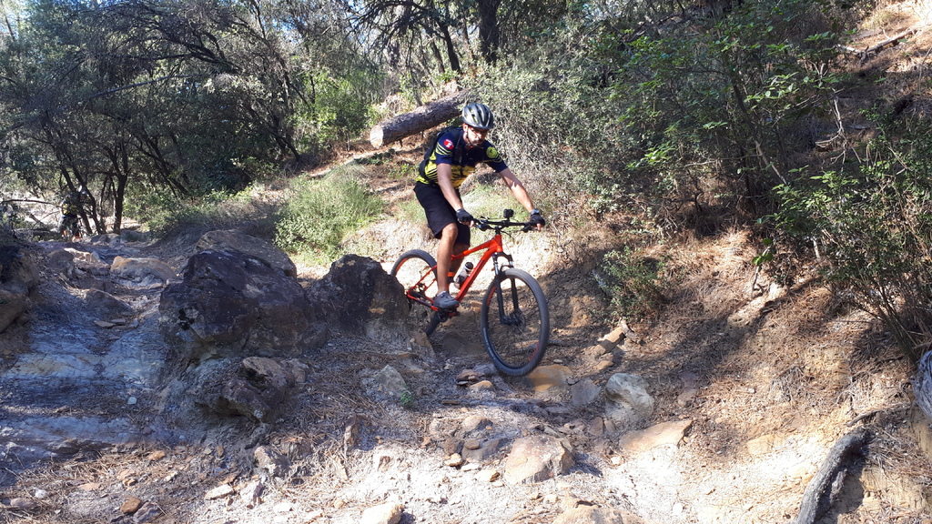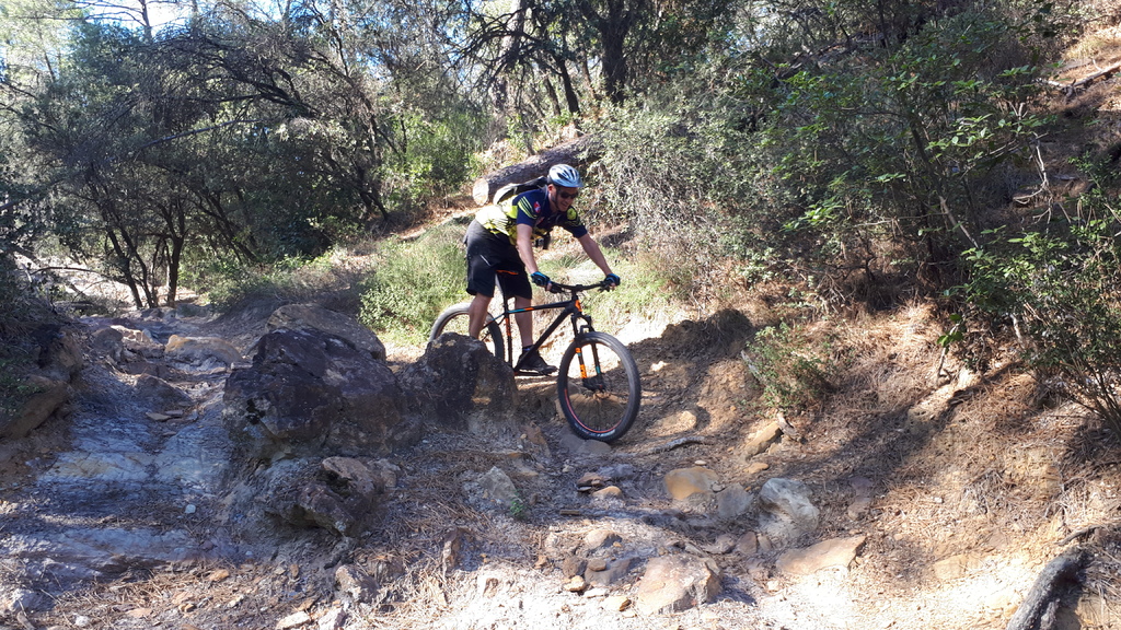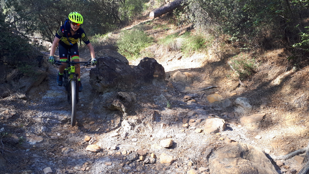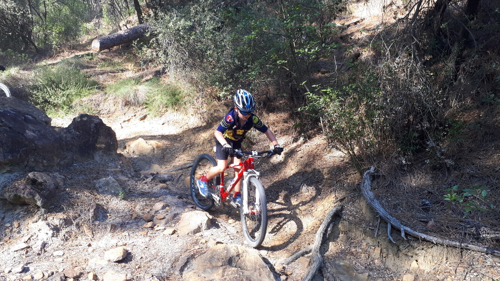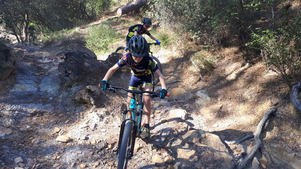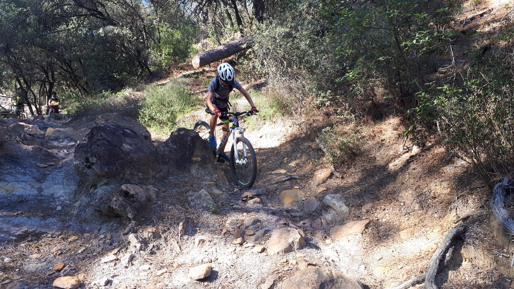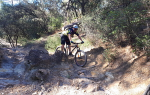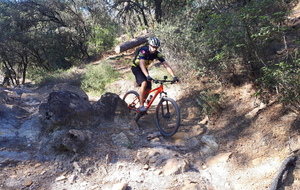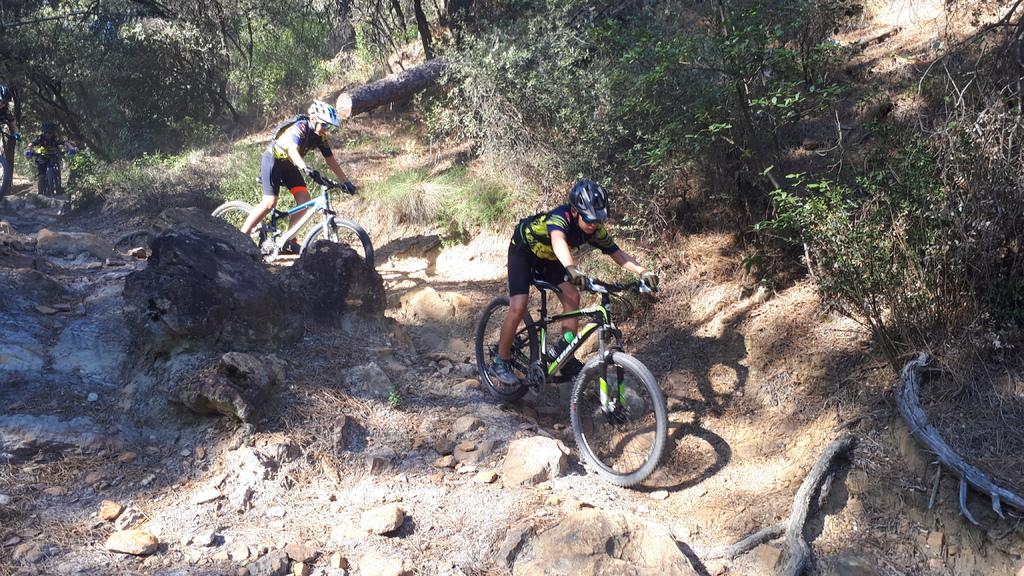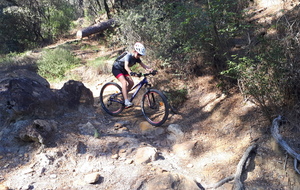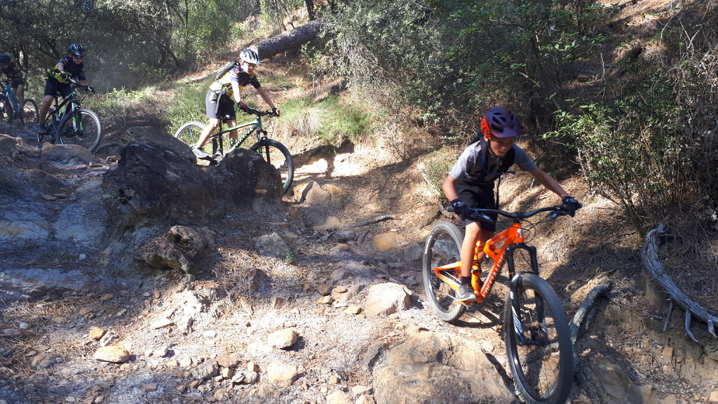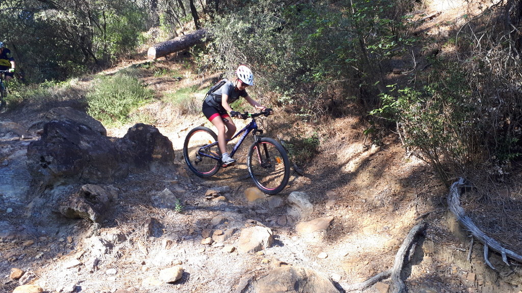 Quelques exercices de maniabilité avec entre autres un passage sur une branche en levant la roue avant ont complété la séance.