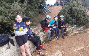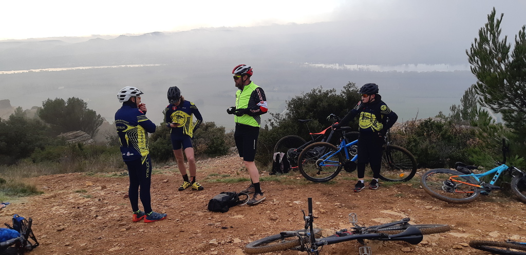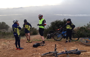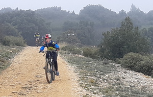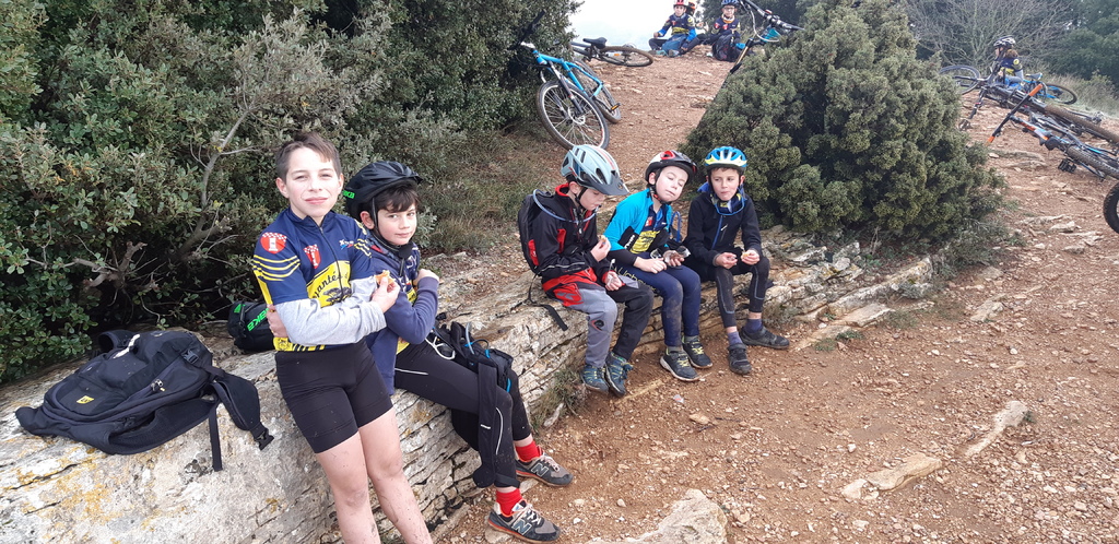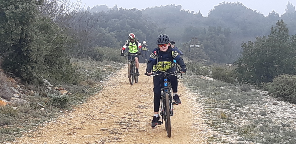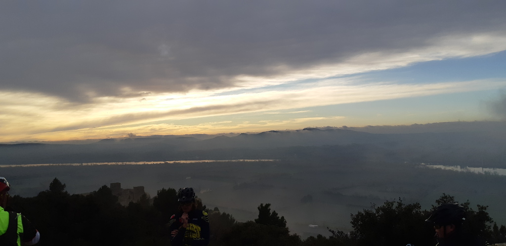 Et c'est vrai, il fallait bien ça pour se parer du temps humide de cet après-midi. Nous sommes donc montés puis descendus puis remontés puis redescendus pour enfin remonter et là, nous étions au bout du bout, au dessus du château de Mornas ! Nous avons fait la pause goûter et découvert le mont Ventoux au dessus des nuages ! Un vrai régal pour les yeux !
