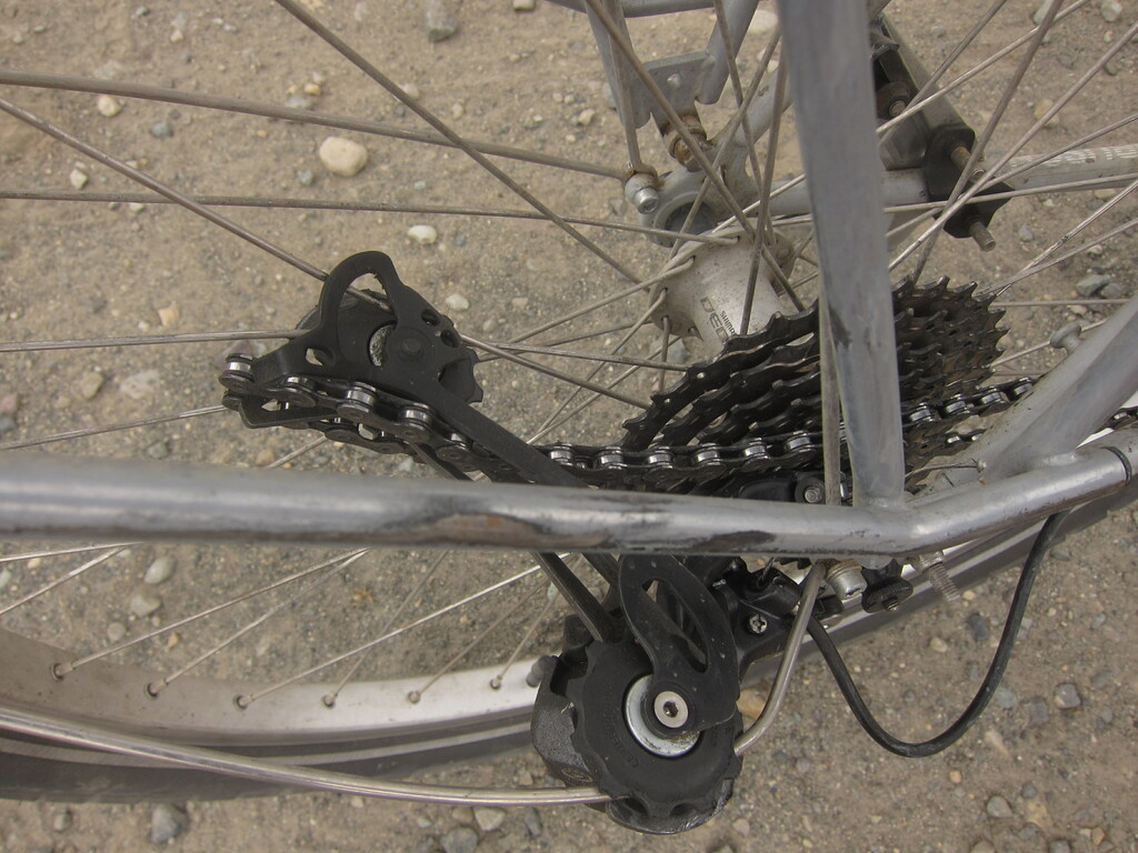 Après ça il fallait songer à rentrer, nous avions encore du chemin et c'est là que s'est produite LA casse... Un morceau de bois dans un dérailleur, et on se retrouve piéton ! Après avoir essayé un "bon chemin roulant"... nous sommes rentrés par la route, en poussant l'accidenté sur son vélo sans transmission, et nous étions à l'heure !
