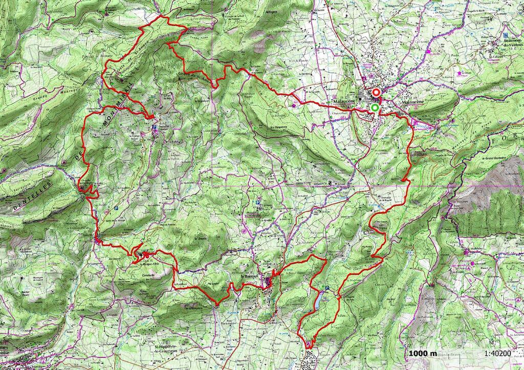 Au redémarrage en début d'après midi passage par le petit village de la Roque Alric et ses maisons exposées au sud à l'abri d'un piton rocheux, puis Le Barroux et son château du moyen âge et le lac du Paty. Suivirent ensuite la remontée en DFCI dans la fôret du Paty au dessus de Caromb jusqu'à la départementale qui relie Bédoin à Malaucène et enfin le retour à Malaucène. Une belle balade dans les monts du Vaucluse sur des sentiers souvent abrités du soleil par les chênes verts, pins et sapins au milieu des cerisiers, des vignes et des lavandes pas encore en fleur ce jour là.