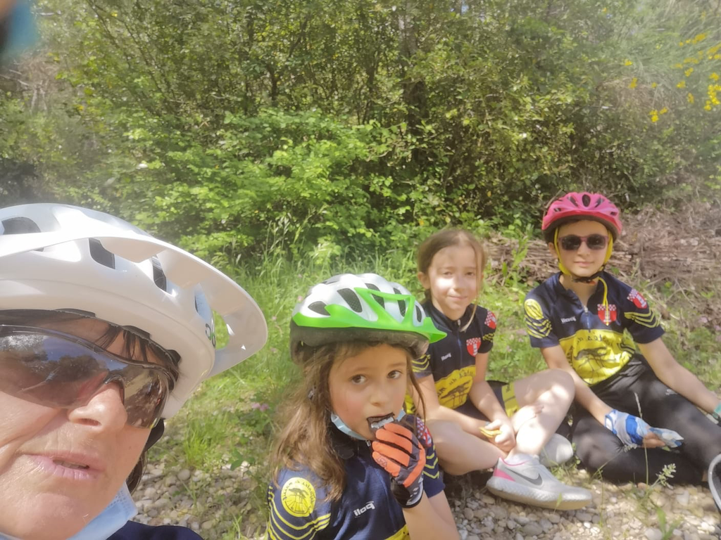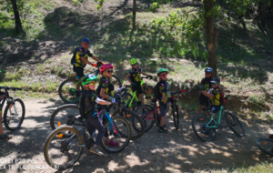 Après plusieurs singles sympas en descente et en montée à l’ombre dans la forêt, nous avons rattrapé le G2 partit un peu avant nous (on a pris un raccourcît) pour enfin arriver au lac pour goûter. Malheureusement nous avons du abréger le goûter et prendre le chemin du retour car les moustiques se sont invités et ont commencé à nous piquer.