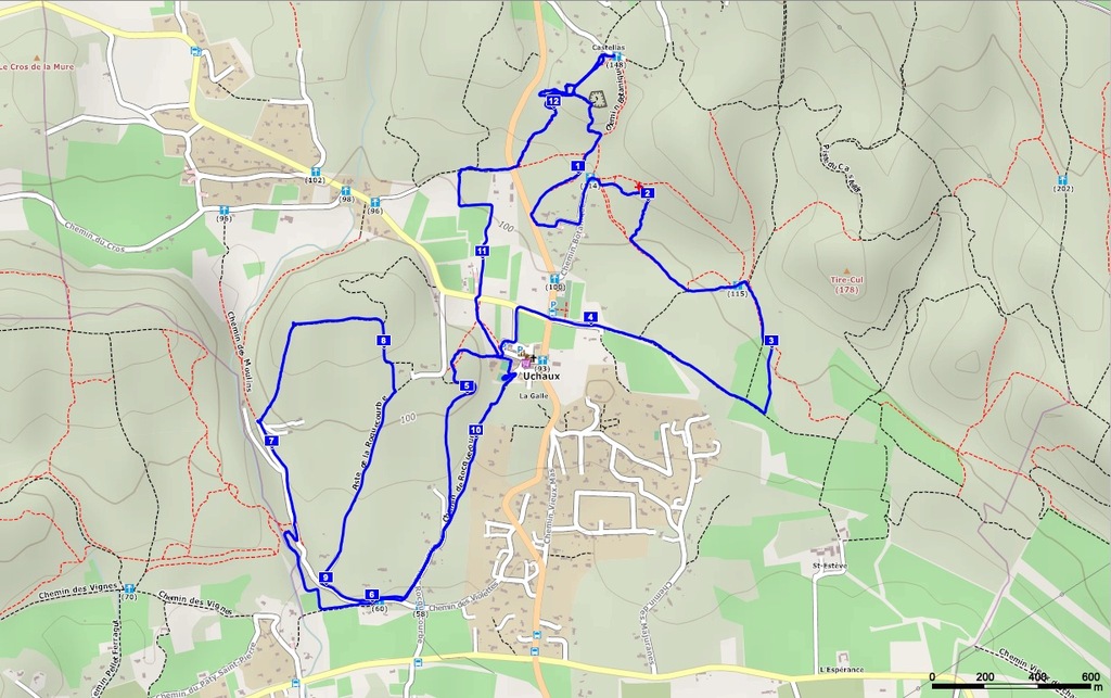 Ensuite, histoire de ne pas congelér, nous avons roulé, plutôt à l'abri des arbres pour faire 2 belles boucles autour d'Uchaux (voir capture de la trace).