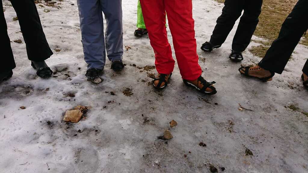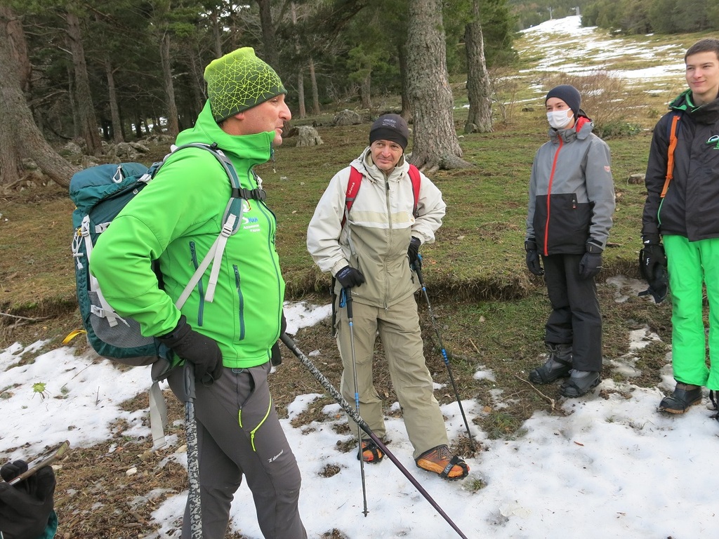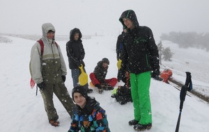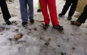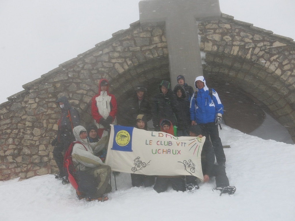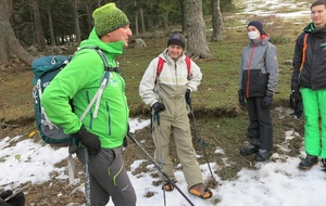 Une sortie raquette était programmée pour le groupe 7 ce samedi depuis la station du Mont Serein au Mont Ventoux. Notre accompagnateur montagne Pierre Peyret a préconisé de remplacer les raquettes par des crampons du fait du manque de neige et des portions de terrain glacées. Pierre a mené le goupe jusqu'à la combe de Fonfiole dans la réserve biologique du Mont Ventoux. Nous nous sommes mis aux aguets et après quelques minutes deux chamois ont été observés un peu au dessus. L'après midi a été consacrée à une montée au travers des pistes de ski jusqu'à la chapelle de sommet du Mont Ventoux (500 m de dénivelé, ça calme). La pluie à la station s'est transformée en neige dans la montée, accompagnée de bourrasques de vent au sommet. Place à la luge ensuite pour redescendre à la station. Un grand merci à Many pour l'organisation ainsi qu'à Arnaud et Pierre Ange pour le bon déroulement de cette journée.