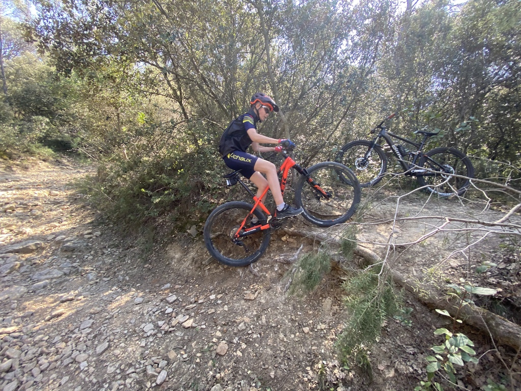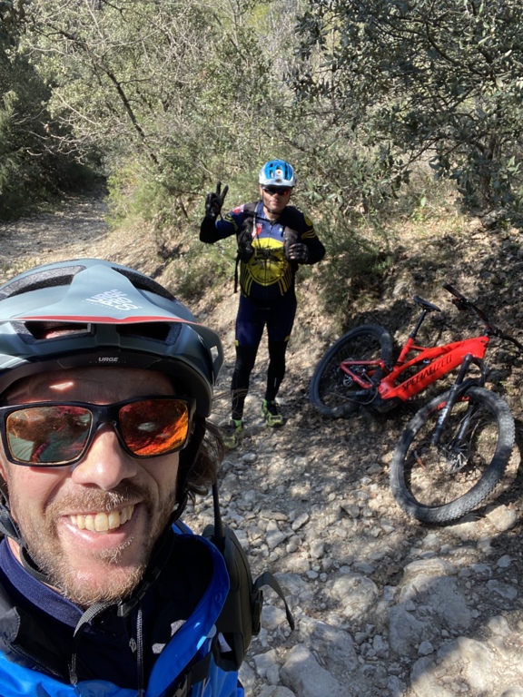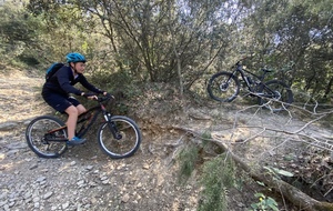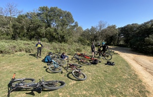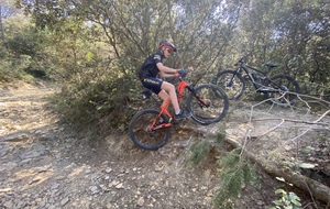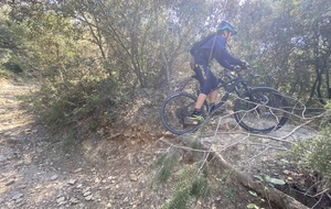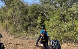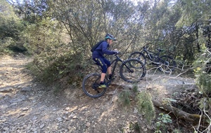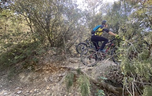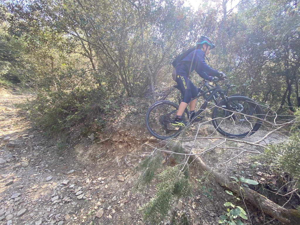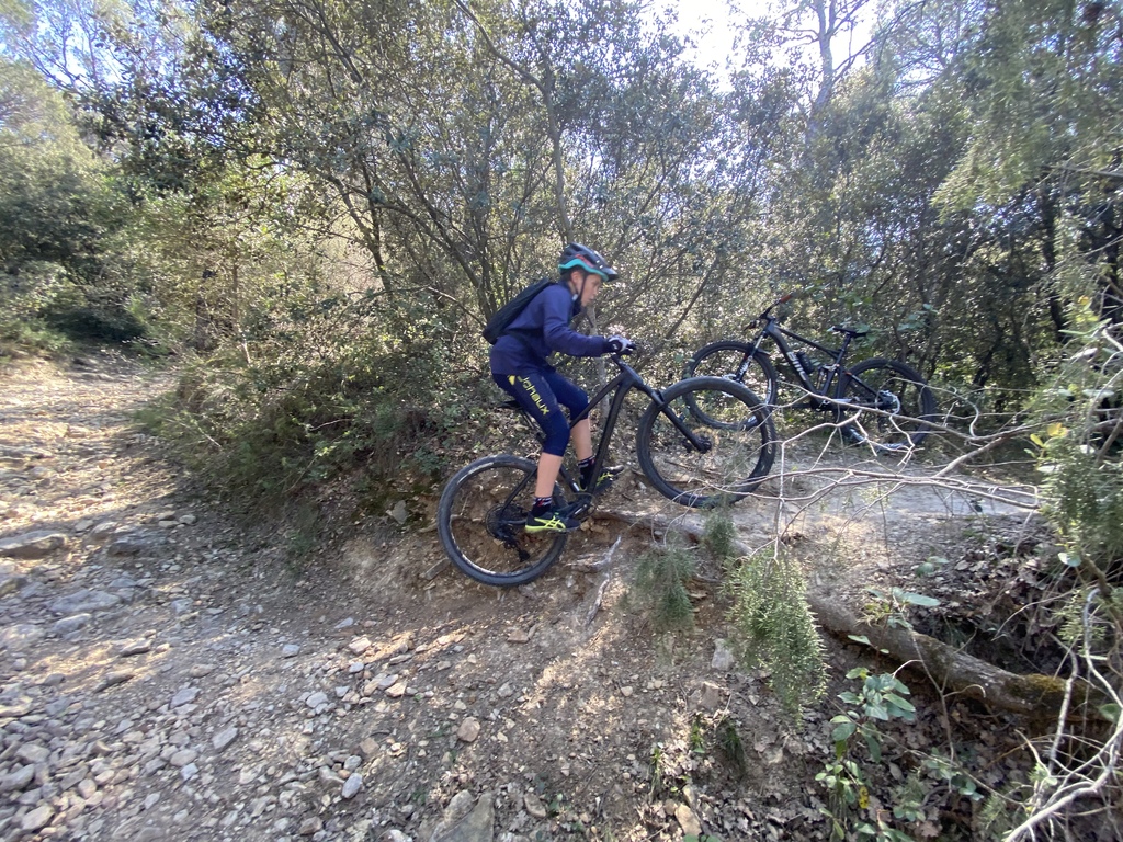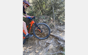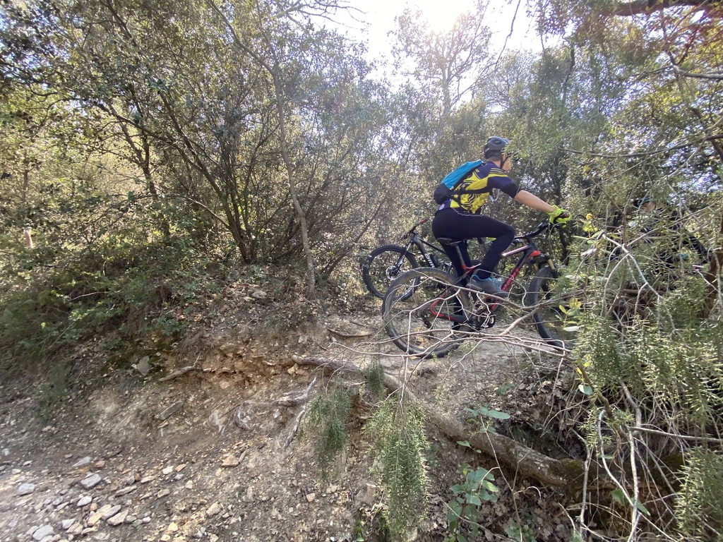 Direction donc Uchaux par le bas du massif et Saint Estève… nous remontons sur le DFCI par le câble de gauche… direction le Castellas et le chemin des ânes. Puis on remonte jusqu’à l’Aspre puis Rochegude par le sentier de derrière le cimetière… avec au passage un super exercice technique de passage d’une grosse bosse avec racine… qui nous facilitera la vie la prochaine fois.
