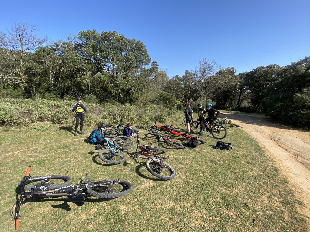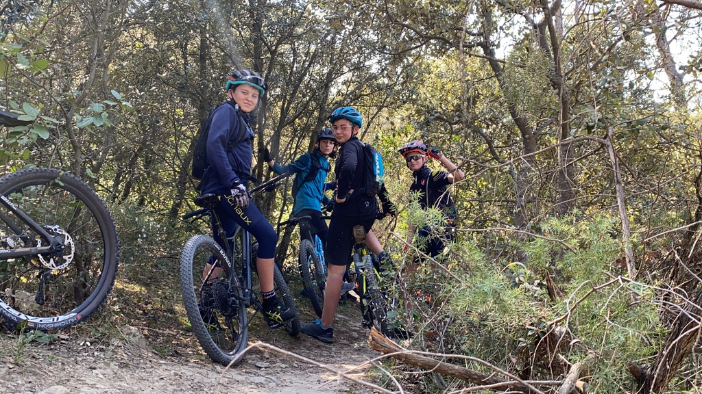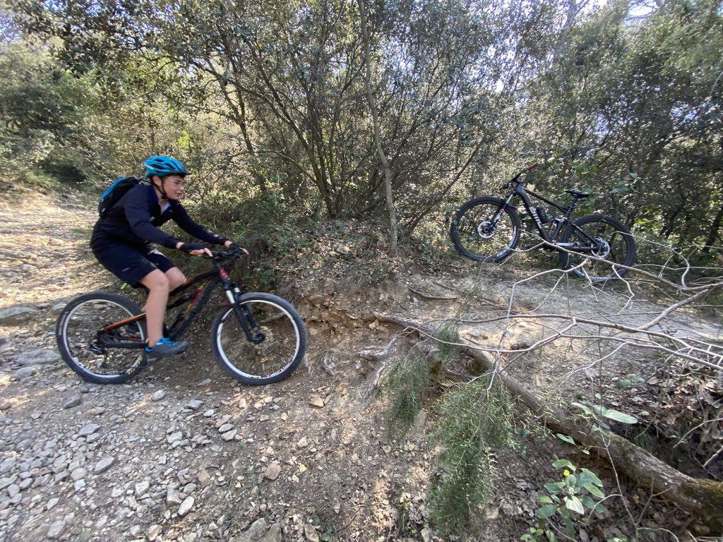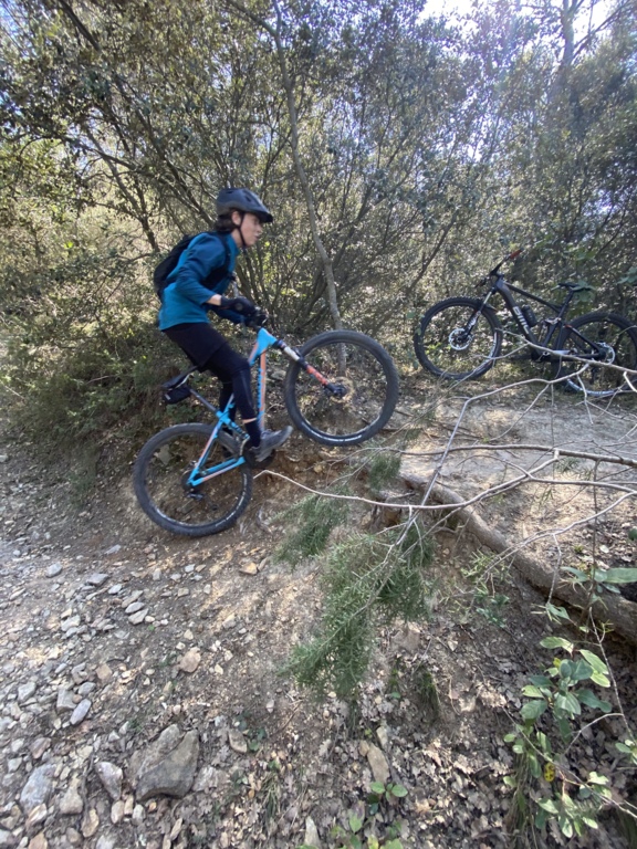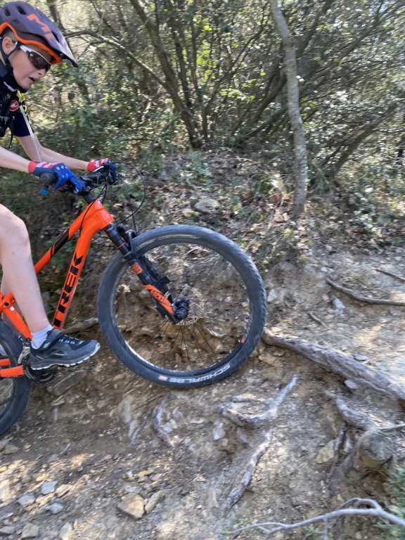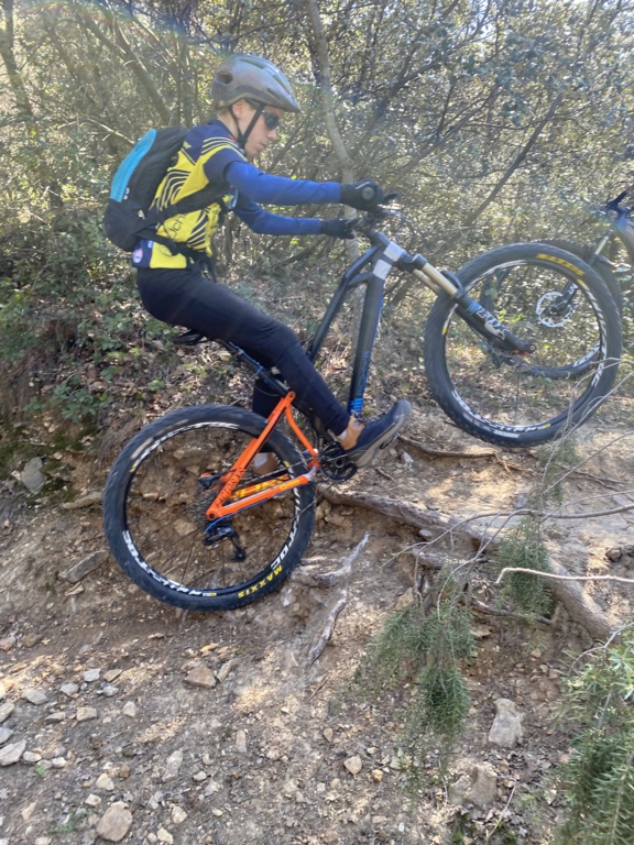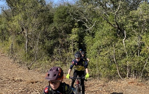 Direction donc Uchaux par le bas du massif et Saint Estève… nous remontons sur le DFCI par le câble de gauche… direction le Castellas et le chemin des ânes. Puis on remonte jusqu’à l’Aspre puis Rochegude par le sentier de derrière le cimetière… avec au passage un super exercice technique de passage d’une grosse bosse avec racine… qui nous facilitera la vie la prochaine fois.