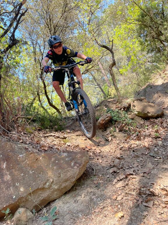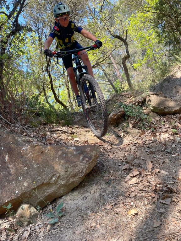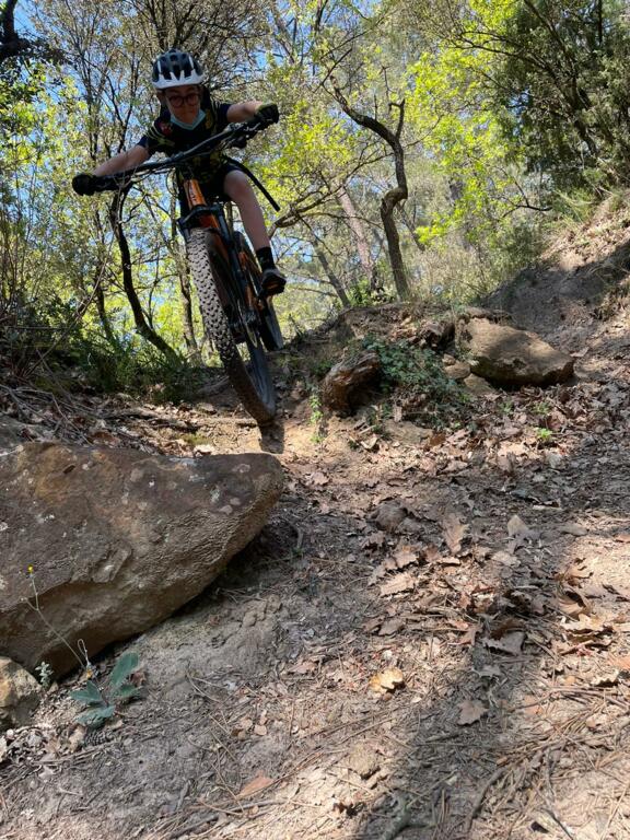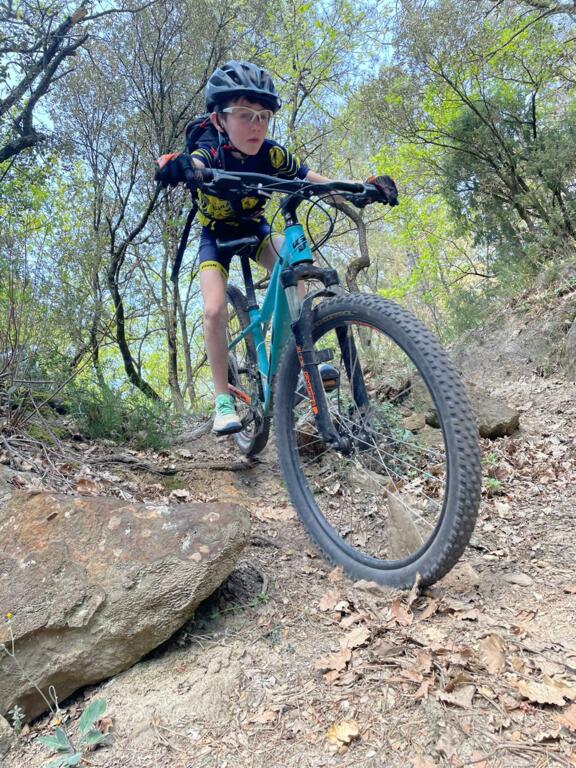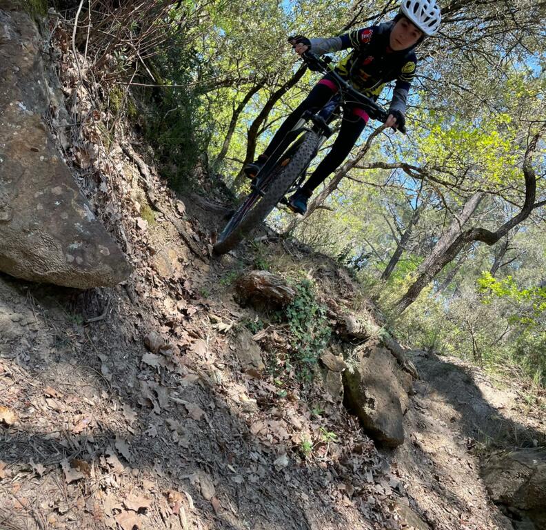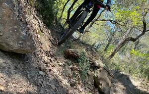 Elle avait pourtant bien commencé cette séance au départ du Paty. Direction "la clairière aux marches" où nous sommes restés un bon moment à enchainer les exercices (voir photos). Ensuite direction la carrière de Piolenc, encore un peu de mania... et c'est ensuite que ça s'est gaté ! Pour essayer un nouveau chemin nous sommes partis un peu "à l'aventure" ... Et on n'aurait pas dû ! Montées impossibles, puis (presque) plus de chemin mais pas envie de redescendre, alors on continue à travers la "jungle", on porte le vélo (enfin on essaye !), on se fraye un chemin au milieu des arbres morts, et enfin on retombe sur un chemin connu ! Entre temps quelques chutes, heureusement sans gravité, étaient venues compléter le tableau ! Pour finir en beauté nous avons voulu prendre un beau chemin technique et rapide, les enfants maitrisent sans problème ! Oui mais les pneus... moins ! Donc crevaison, pas de chambre à air, réparation qui ne tiendra pas... obligés de s'arrêter regonfler... Je vous l'ai dit : une séance à oublier !
