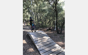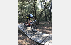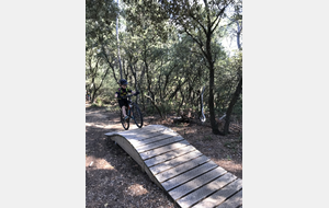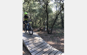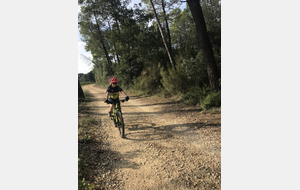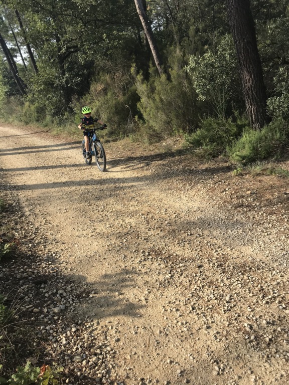 Arrivés au château St Estève, nous sommes montés dans le massif pour prendre un sentier assez technique que les enfants n’ont pas très bien réussit à passer à vélo, mais c’est normal vu la difficulté (Les enfants d’un autre groupe plus agés n’ont pas réussît non plus...), pour ensuite revenir vers Uchaux.