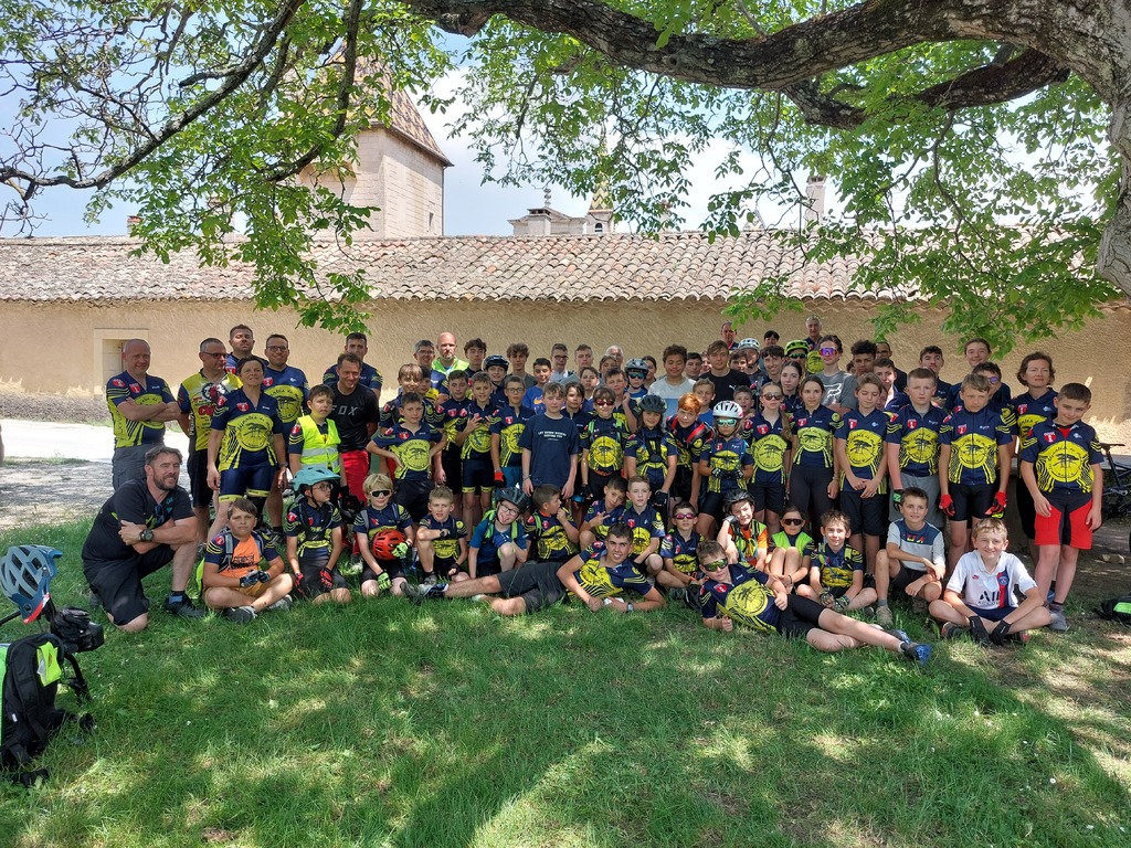 Il y avait beaucoup de monde samedi dernier sur le parking de la salle des Farjons ! 71 enfants de l'école de VTT et 22 adultes s'étaient donné rendez-vous pour rejoindre, à vélo, leur lieu de séjour, le Domaine Saint Pancrace à Pont Saint Esprit.