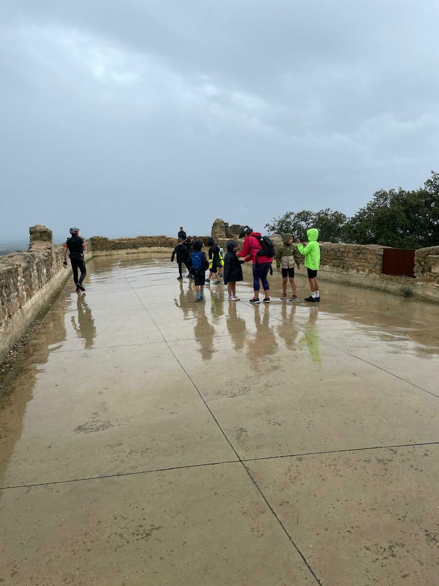 Heureusement, nous étions proches du château et avons pu nous mettre à l’abri sous le porche, au pied du donjon. Pour certains, ce fut aussi l’occasion de découvrir pour la première fois le site du Castellas, d'échanger sur l'époque médiévale et d'admirer la vue de la terrasse.